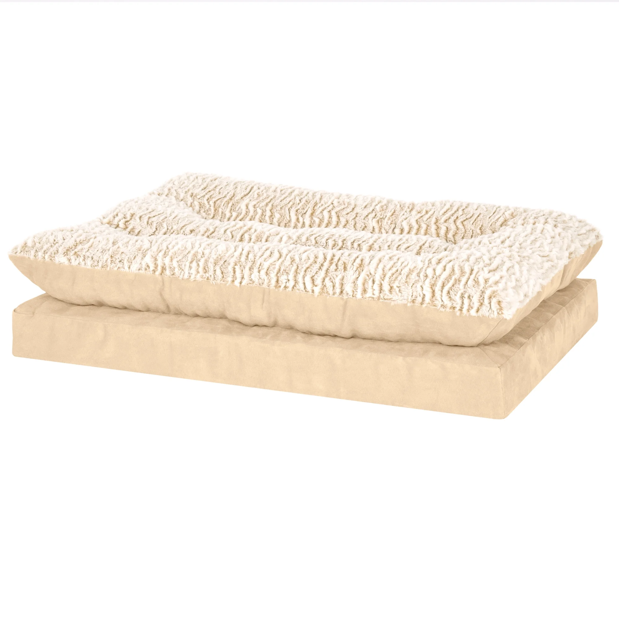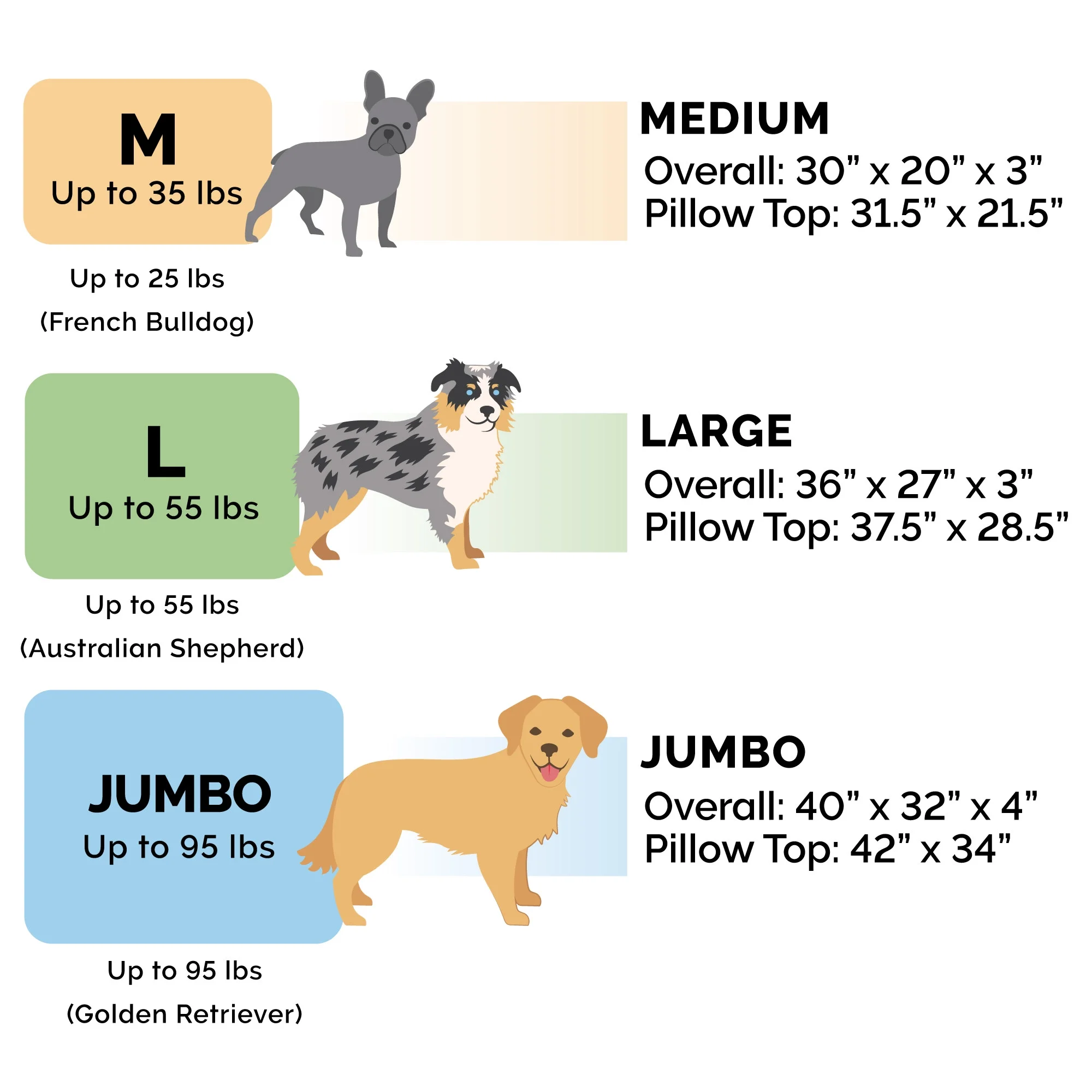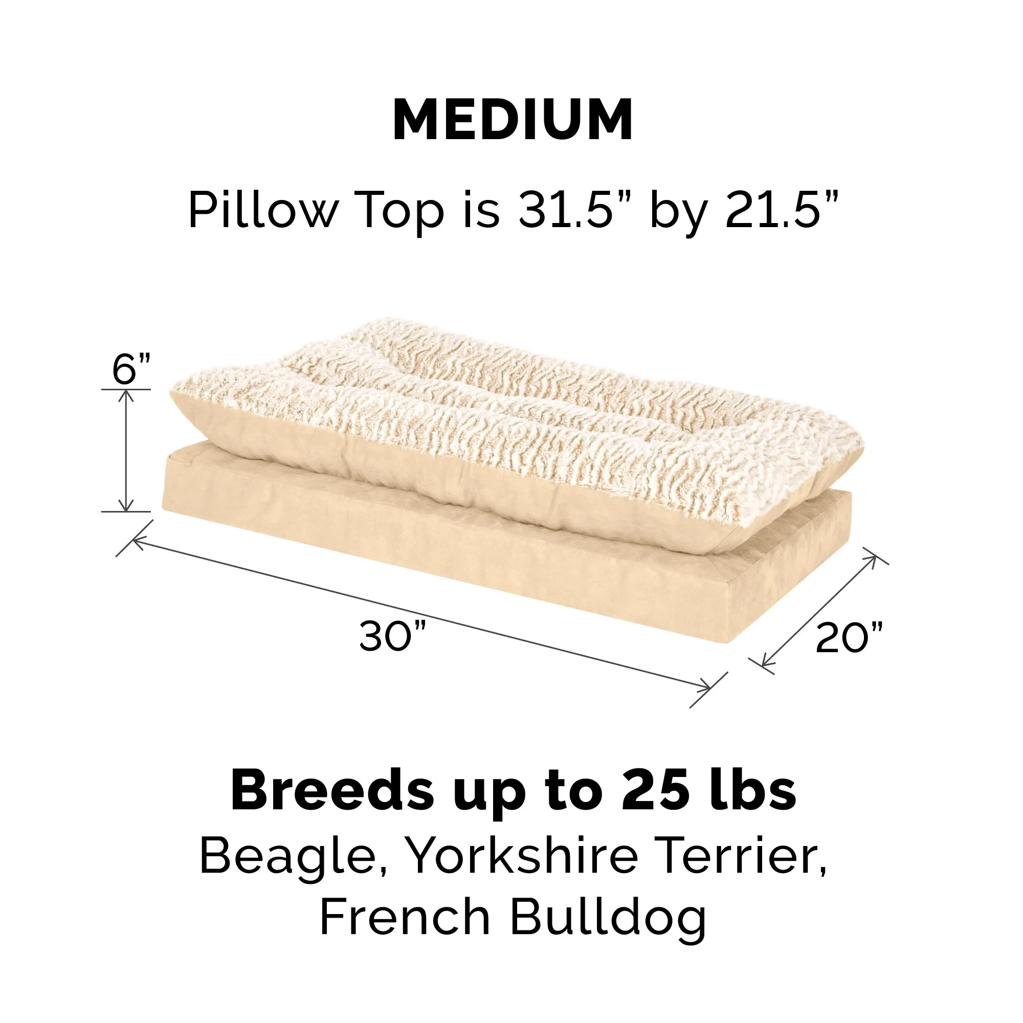 FOR DOGS AND CATS: This dog bed features a tufted pillow cushion atop a supportive mattress base to provide utmost comfort and support for pets of all ages; designed with a non-skid base to help keep it in place SLEEP SURFACE: The embossed faux fur pillow surface is plush and oh-so-soft; the fabric is gentle on noses and paws for enhanced snuggling comfort EASY ON JOINTS: The pillow top provides an extra layer of support to help relieve aching joints; it sits atop an egg-crate orthopedic foam base, which helps cushion pressure points and improve circulation for a good night’s rest PRODUCT DETAILS: Orthopedic Dog Bed, Taupe; Medium – 30″ x 20″ x 3″ AVAILABLE VARIANTS: The dog bed comes in Taupe and Gray; it’s also available in Medium, Large, and Jumbo EASY CARE: The removable dog bed cover (and attached pillow cushion) is completely machine washable for your convenience; for more specific care instructions, please refer to the hang tag and/or seam label if applicable