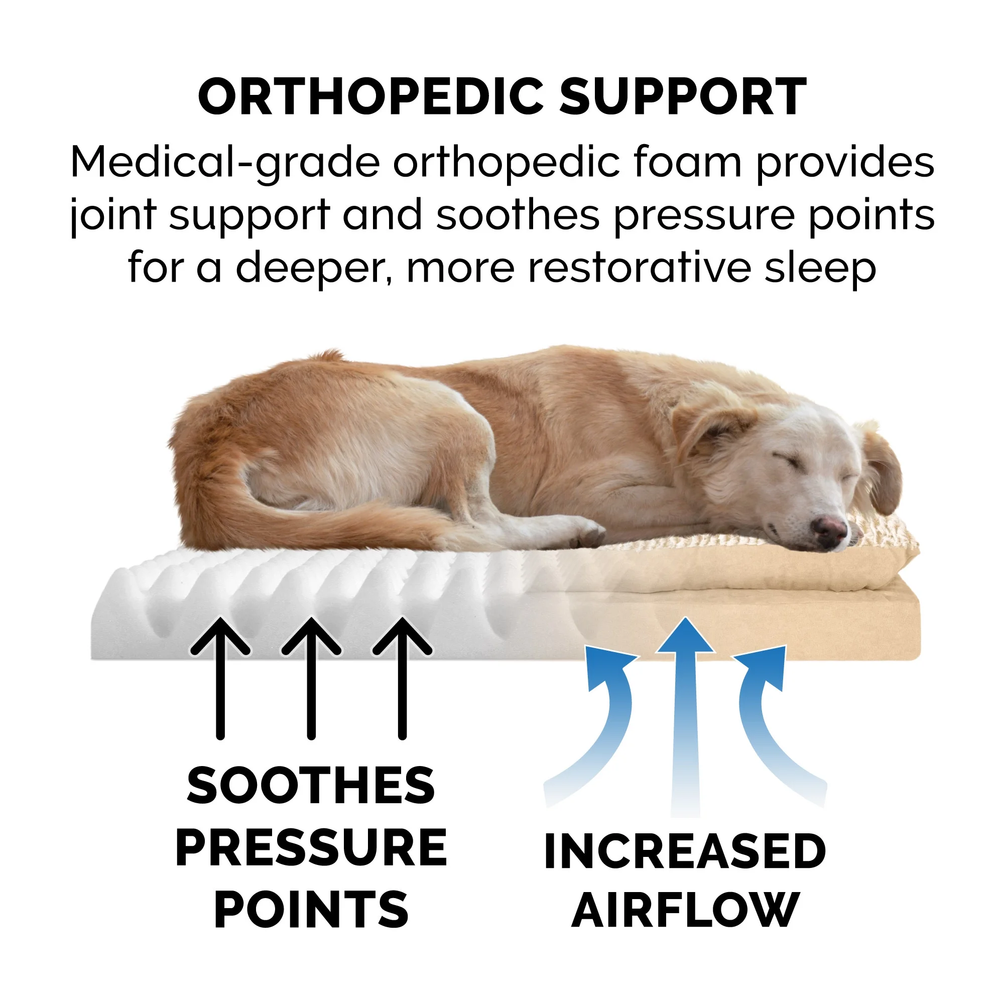FurHaven Pet Products Embossed Faux Fur & Suede Orthopedic Pillow Top Mattress Pet Bed for Dogs & Cats – Taupe, Medium