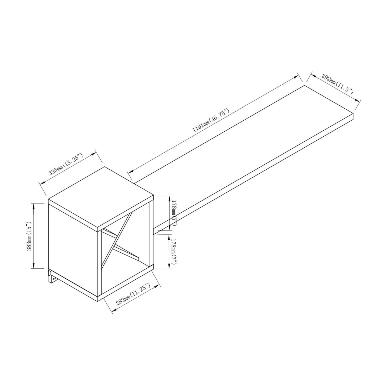 • Overall dimensions: 60″L x 11.5″W x 15″H