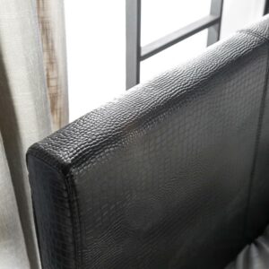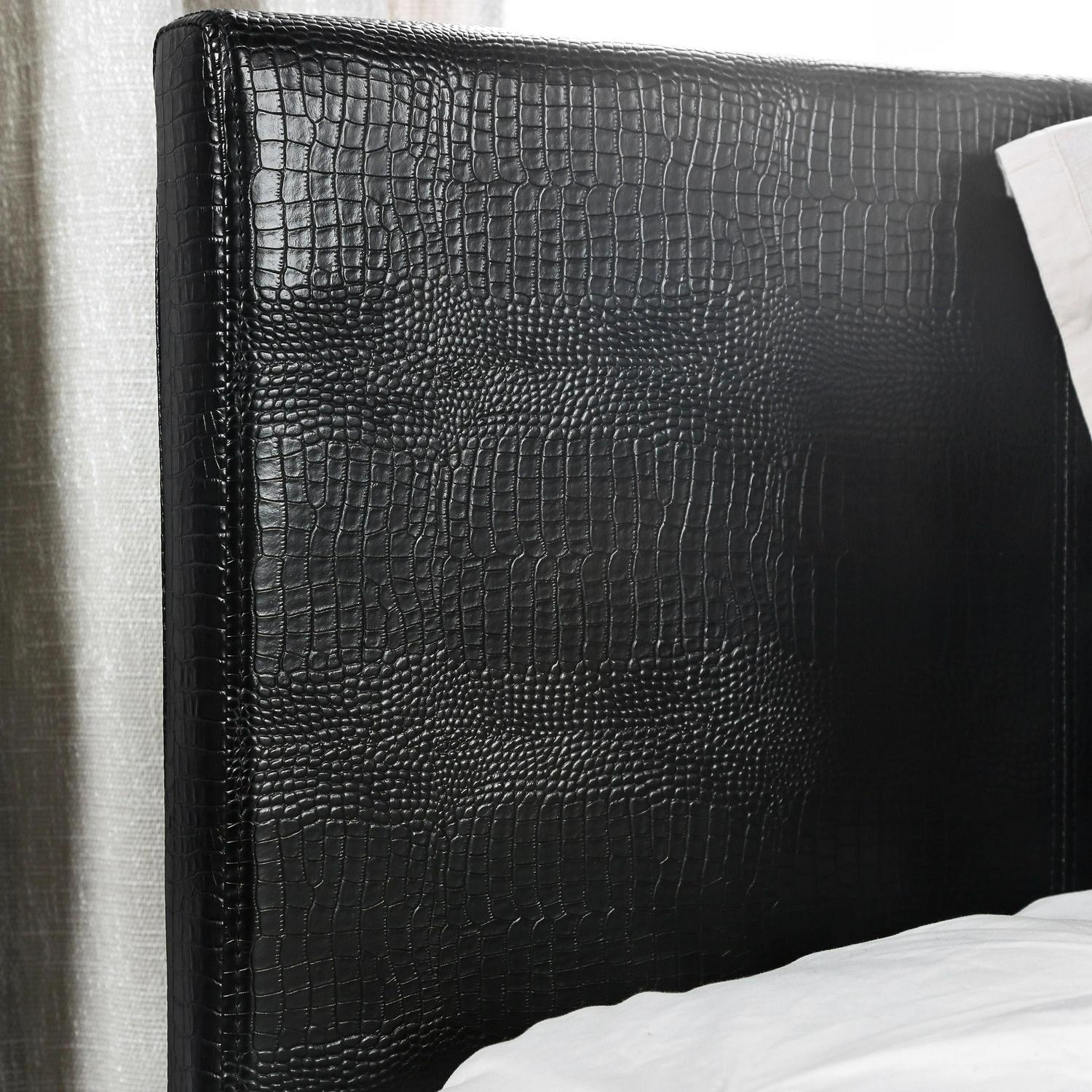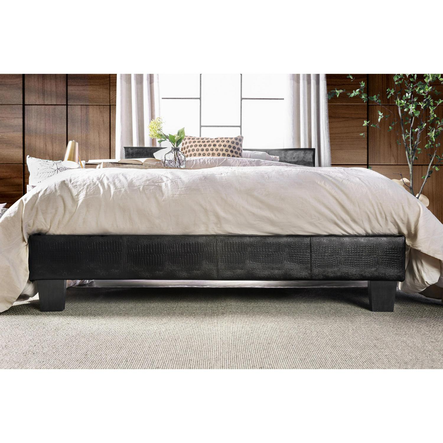 With a sleek bed and elegant design, this wood bed will easily fill your bedroom with contemporary style! The rectangular shape of the headboard easily matches the size of your mattress and is accented by prominent stitched detailing. Mattress-ready slats create a sturdy base for a mattress and are held together by an black upholstered frame. Featuring crocodile skin texturing on the faux leather upholstery, this bed is available in multiple sizes. About Furniture of America Furniture of America is proud to be the family friend that always has your back. We re more than just a business. Our customer care team is part of a larger FOA community dedicated to delivering a happy home. So browse our selection and invite warmth and character into every room in your home.
