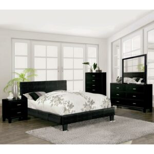 Furniture of America Kaye Faux Leather Platform Bed, Queen, Black