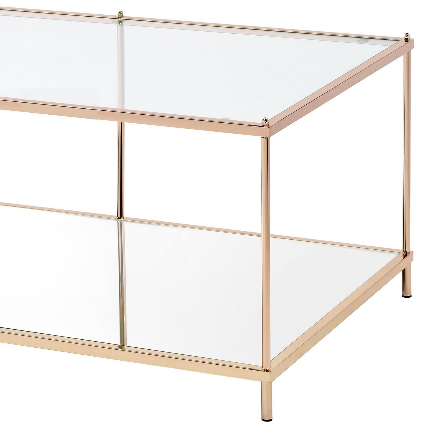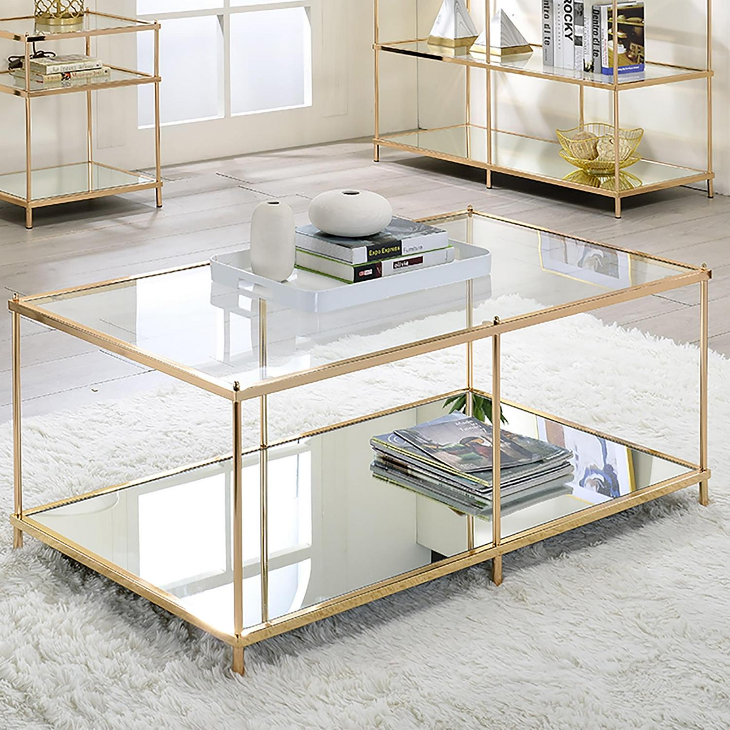 – Furniture of America Tenne Glass Top Coffee Table, Champagne