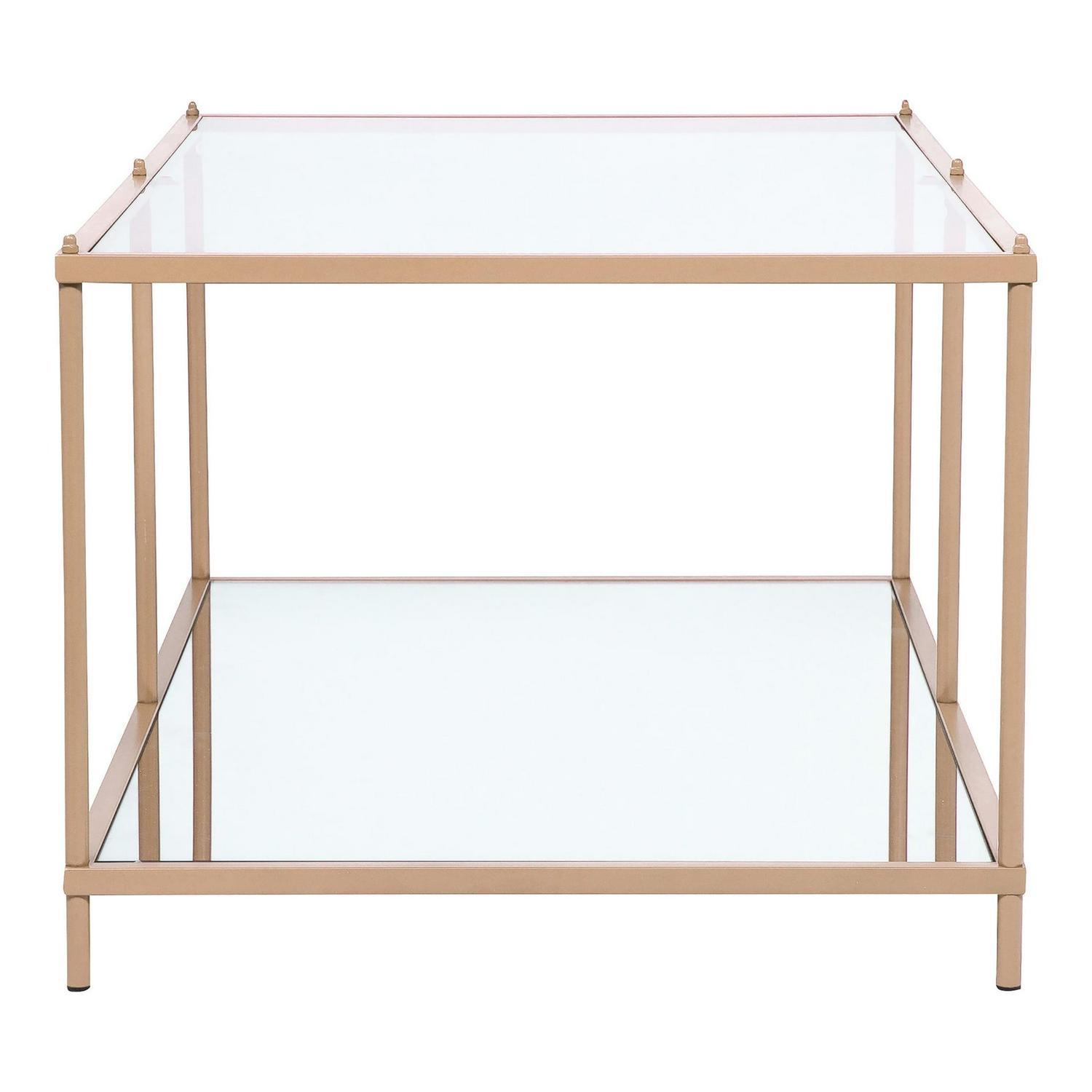 - Mirrored lower shelf adds dimension