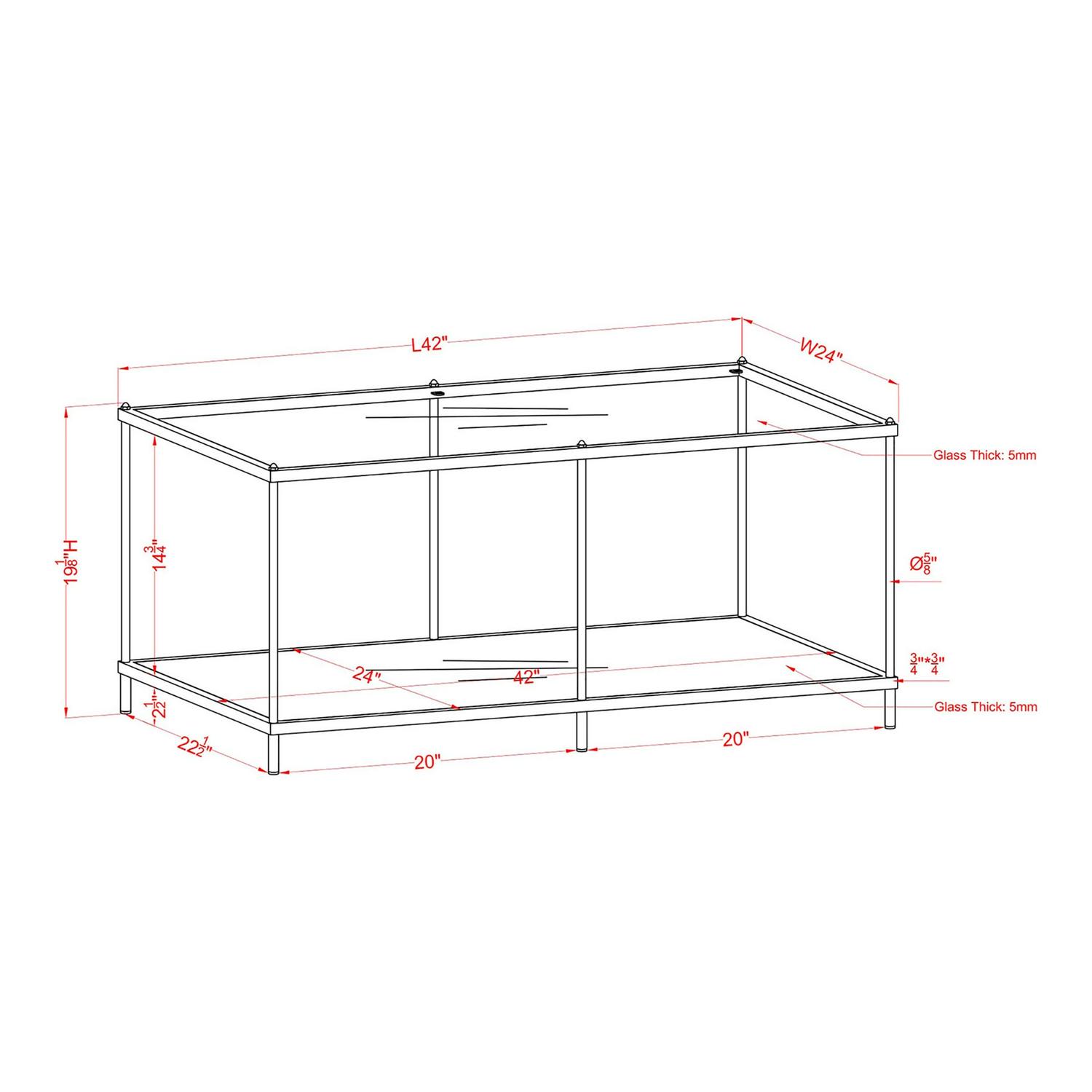 - Overall Dimensions: 42″W x 24″D x 19″H