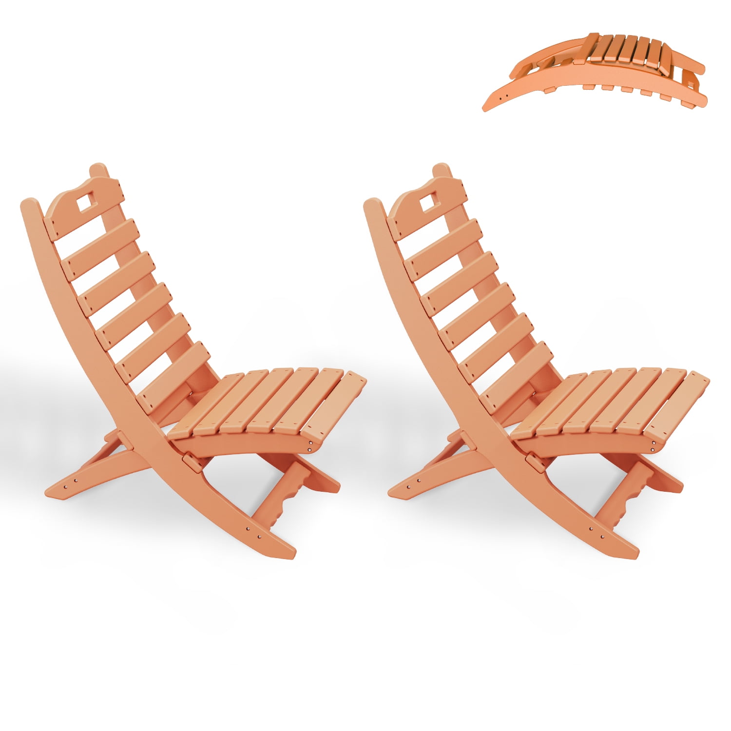 FURRYFECTION Adirondack Folding Xavier Chair Set of 2,HDPE All-Weather Portable Outdoor Chairs for Beach Pool Camping Fishing Fire Pit Patio Garden Indoors,Orange