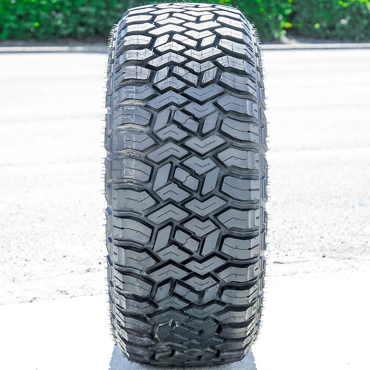 The tire upgrades the rugged terrain traction. The special multi-directional staggered tread blocks increase the soft, loose, and uneven terrain grip, optimizing the forward motion on versatile terrains. Rugged terrain tires also guarantee a safer on-road performance. The tread elements improve the grip on the driving surface, boosting the forward motion on loose dirt and muddy terrain performance. The tread manages to keep the footprint clean by eliminating mud, snow and rocks from the footprint. The stone ejectors prevent stone retention by preventing rocks from drilling into the casing. This also prevents mud and snow from blocking the tire’s surface contact. The tire guarantees a safer on- and off-road performance.