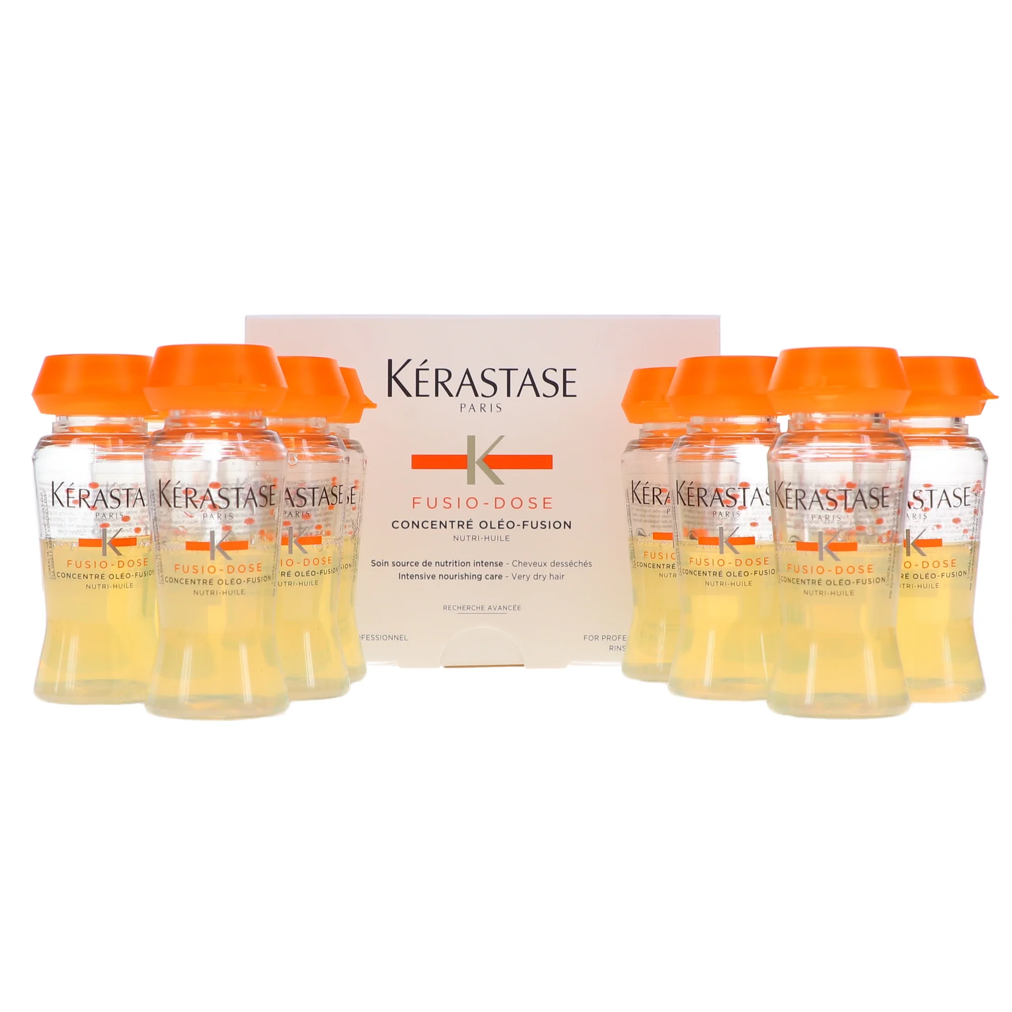 Repair the damage to your hair with Kerastase fusio-dose concentre oleo-fusion. Replenish and nourish ultra-dry and sensitive hair. Protect hair from the harsh environment, including dirt, pollutants, and heated hair styling. This specially formulated treatment is rich in nutrients and moisturizes hair from the follicle to the end of the hair fiber. Hair will look luxurious and healthy after using this nutritional, rinse-out treatment.