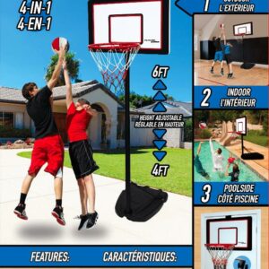 Future Stars 4 in 1 Basketball System – Outdoor, Indoor, Pool-Side and Over the Door! Backboard with Metal Rim, Height adjustable Metal Poles with Base that can be filled with Water or Sand