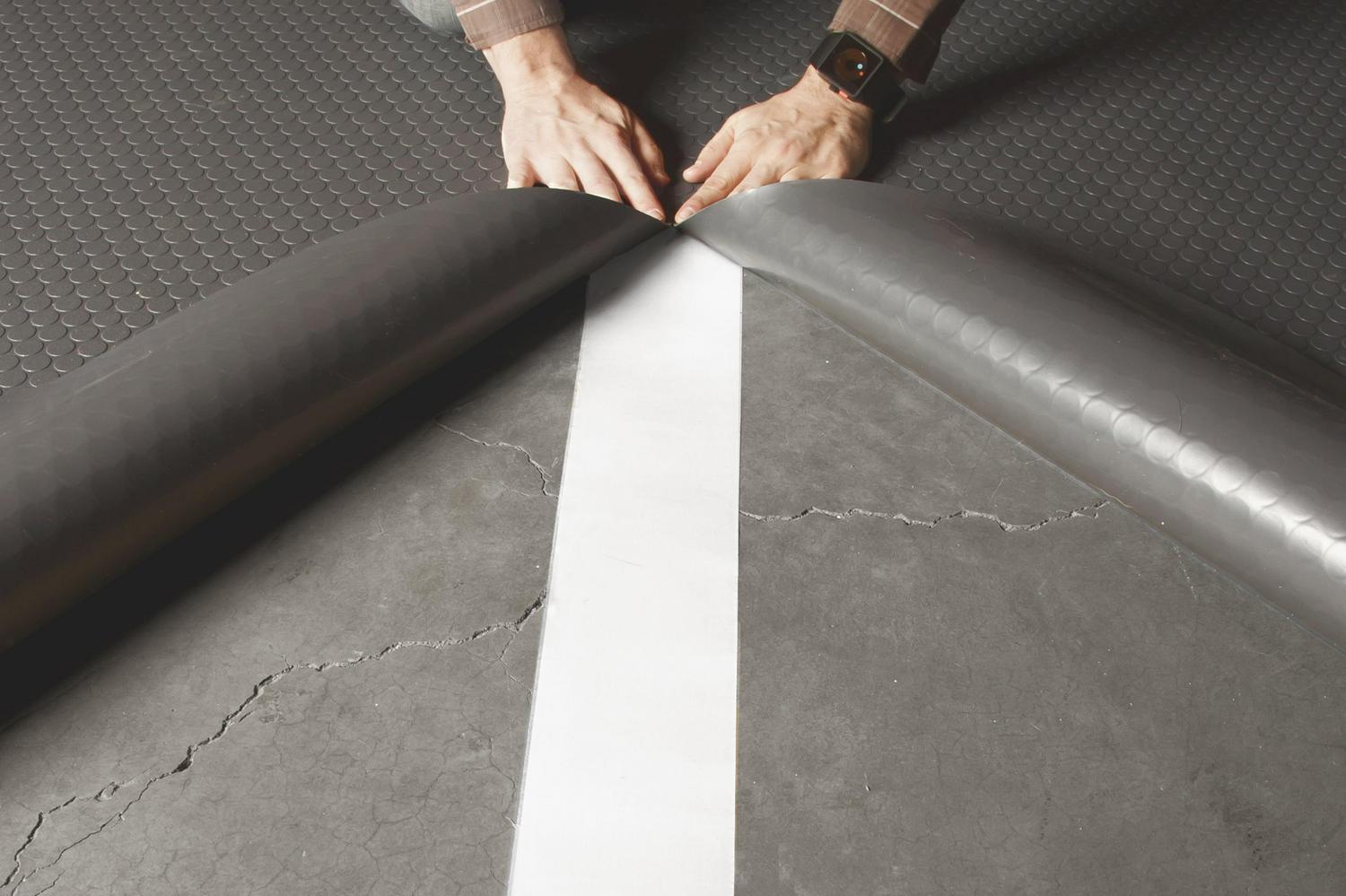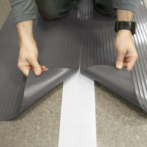 This White Seaming Tape is specially formulated for seaming G-Floor Roll-Out flooring together. Extra strong fiberglass cloth tape with acrylic adhesive creates a durable, waterproof bond between mats. This tape has adhesive on only one side, providing a bond along the underside of the seam, without causing adherence to the floor.