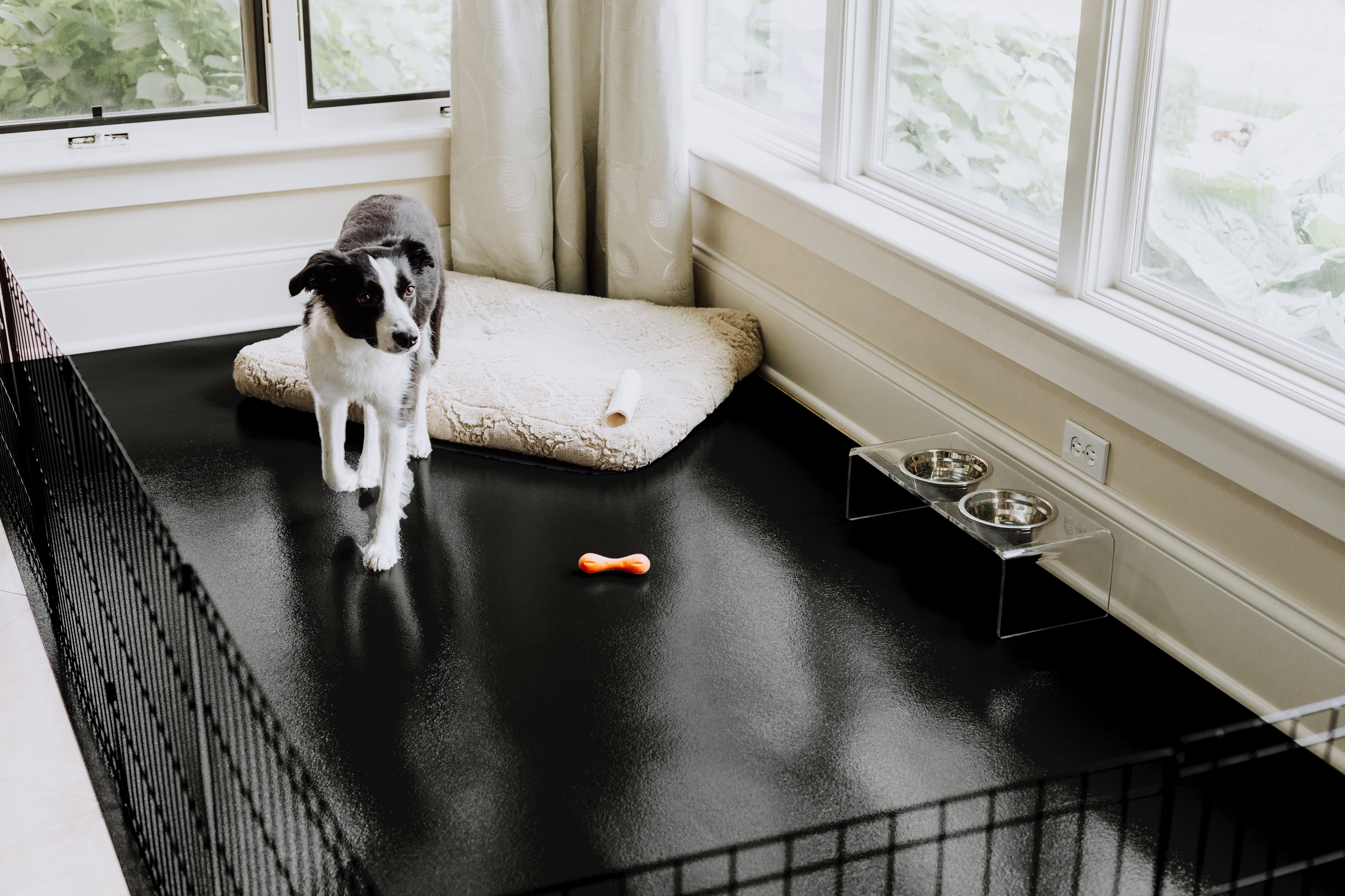 Protecting your low-pile carpet, hardwood, tile and other expensive flooring form pet accidents, the G-Floor Pet Floor Protectors save your subflooring from those unavoidable messes your pets bring. The Midnight Black Ceramic ™ flooring for pets is a lightweight and repositionable solution that requires no installation and can be used almost anywhere in your home. Completely customizable, all you need is just a utility knife to cut the pet flooring to size to easily fit whatever area of your home you are needing. This pet friendly flooring will be the solution you and your pet are looking for.
