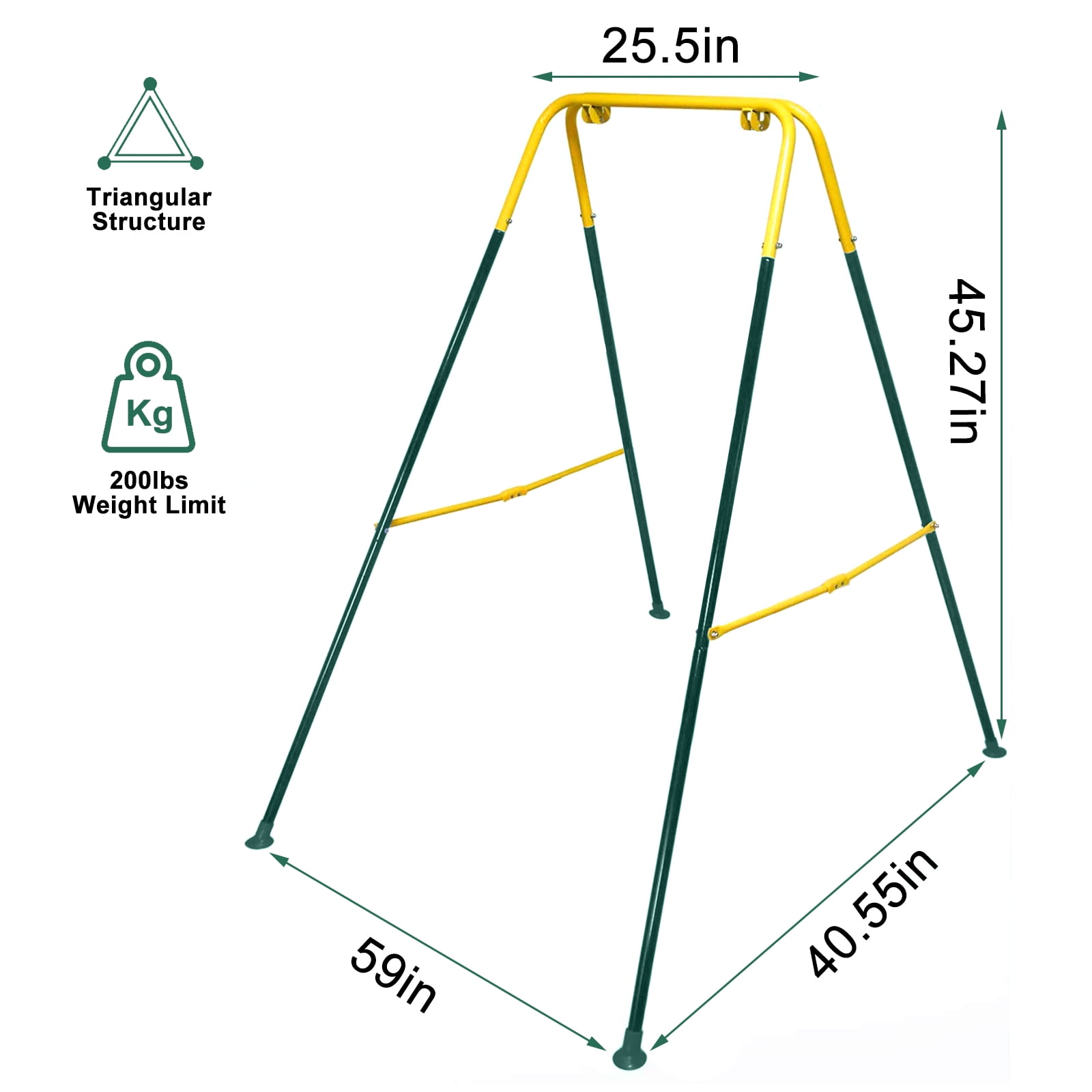 Get ready for endless hours of fun! The G TALECO GEAR 3-in-1 Toddler Swing and Baby Jumper will keep your baby entertained at all ages. It’s safe and fun for kids to play indoors or in the backyard. Our swings are innovatively designed with enhanced safety and play features. This swing combines durability with easy maintenance. Its weather-resistant properties ensure that it can withstand the elements, while its innovative design makes maintenance a snap. You can spend less time worrying about maintenance and more time enjoying time with your children. Our quick and easy assembly method ensures that your child can start swinging right away. Dimensions (L x W x H): 59 x 40.55 x 45.27in Maximum Weight Limit: 200 lbs What you will get? Baby Jumper*1 Baby Swing*1 Foldable Metel Stand*1 Installation Instruction*1