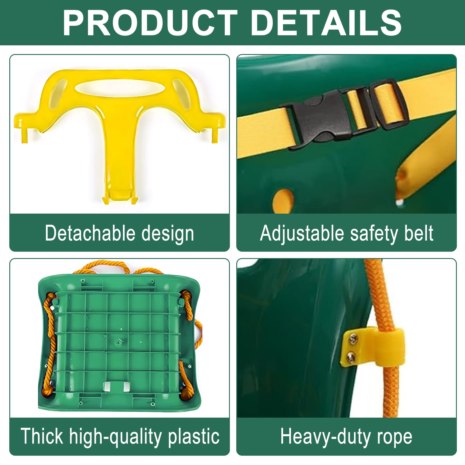 3-in-1 Toddler Swing Set: The swing seat features a removable 3-in-1 design that converts to different modes as your child grows, covering ages from 6 months to 10 years old. Easy to Assemble and Fold: The swing set can be easily assembled in about 10 minutes. You can assemble it together with your lovely kids, spend a happy parent-child time and exercise their hands-on ability at the same time. The metal stand can be folded to save space and easy to store.(40″D x 59″W x 61″H) Safe and Stable: Swing features a durable frame made of strong expandable steel for stability and durability. Triangular design for added stability. Comes with a sturdy rope and harness, perfect for toddlers and young children. Also features non-slip rubber feet that not only enhance stability but also protect the floor from scratches. High Quality Material: The baby swing is made of high quality plastic and powder coated metal, suitable for indoor and outdoor use, perfect gift for Children’s Day and Christmas. Let your baby swing at birthday parties and spend more time playing outdoors and enjoying nature. Customer Service: If you have any dissatisfaction after receiving the swing set, please feel free to contact us, we will give you a satisfactory reply within 24 hours and try our best to help you solve the problem.