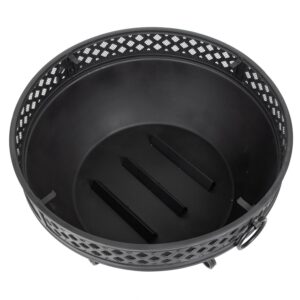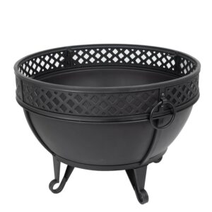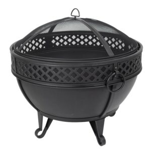 The Gable Fire Pit is the perfect accessory for your outdoor patio. Decorative accents located on the sides of the bowl are highlighted with a black finish. The 13″ deep, 28″ diameter fire bowl features the CirculAir system which raises the fire wood and allows oxygen to circulate for a longer lasting fire. When the fire pit is cool, it’s easy to move your pit with the attached ring handles. The fire pit includes a mesh cover to help prevent escaping sparks, a cooking grid for grilling and a poker to tend the firewood.
