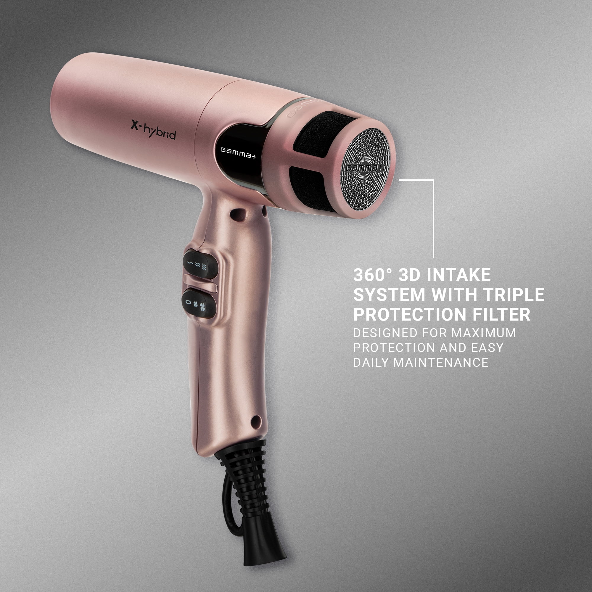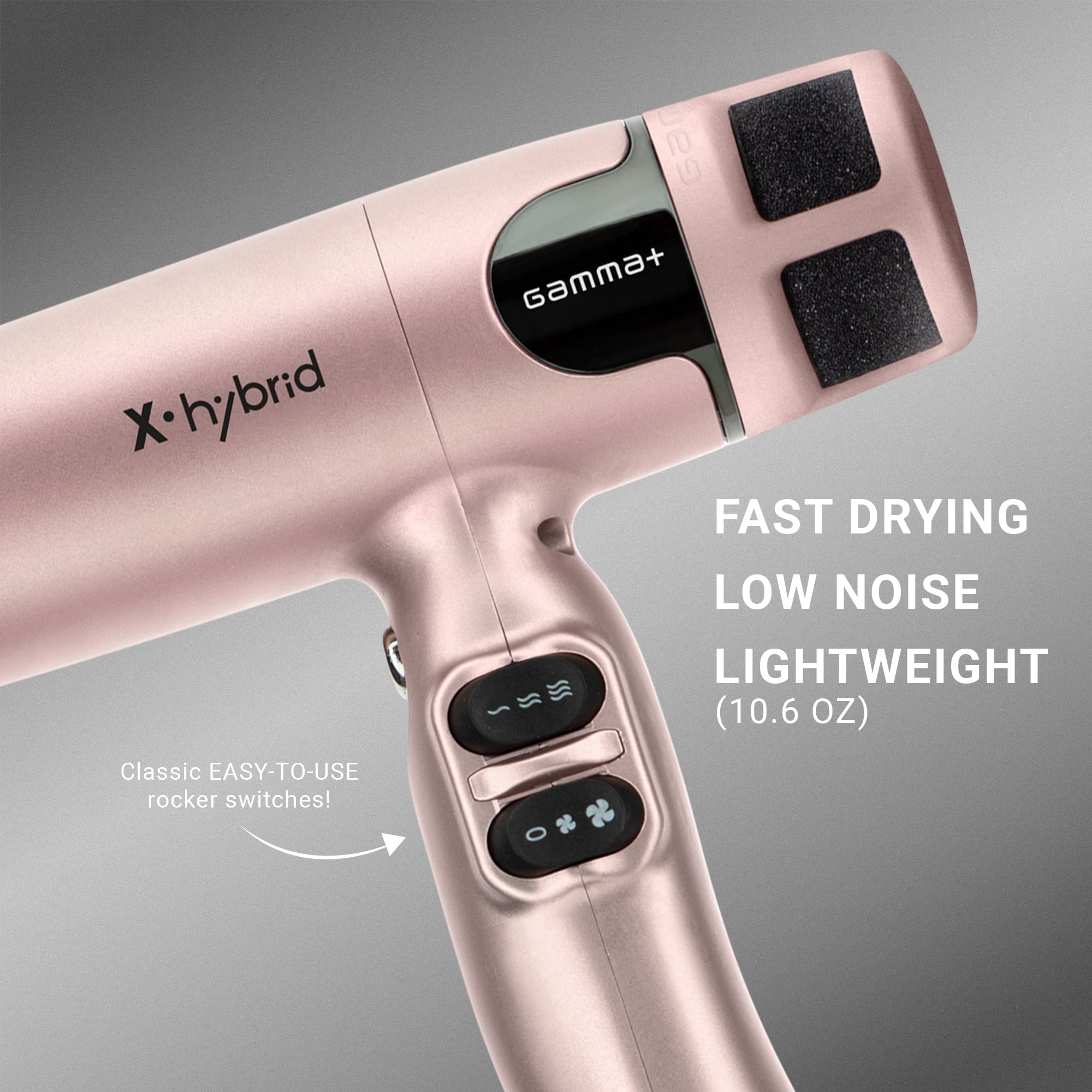 GAMMA+ Hybrid Compact Professional Ionic Hair Dryer, 1600W, Rose Gold, Includes 2 Nozzles and Diffuser