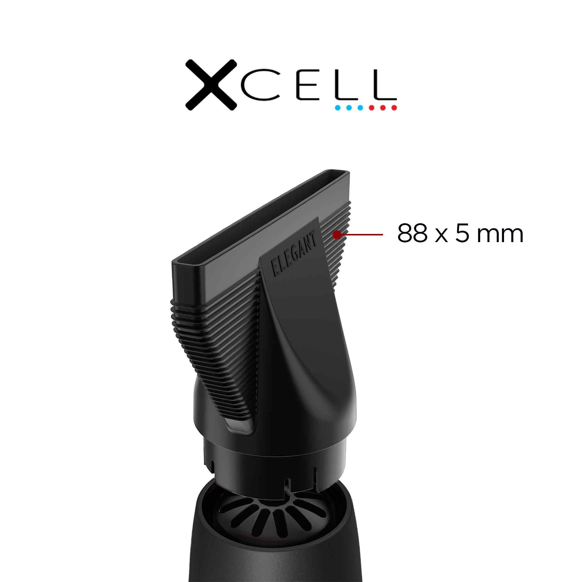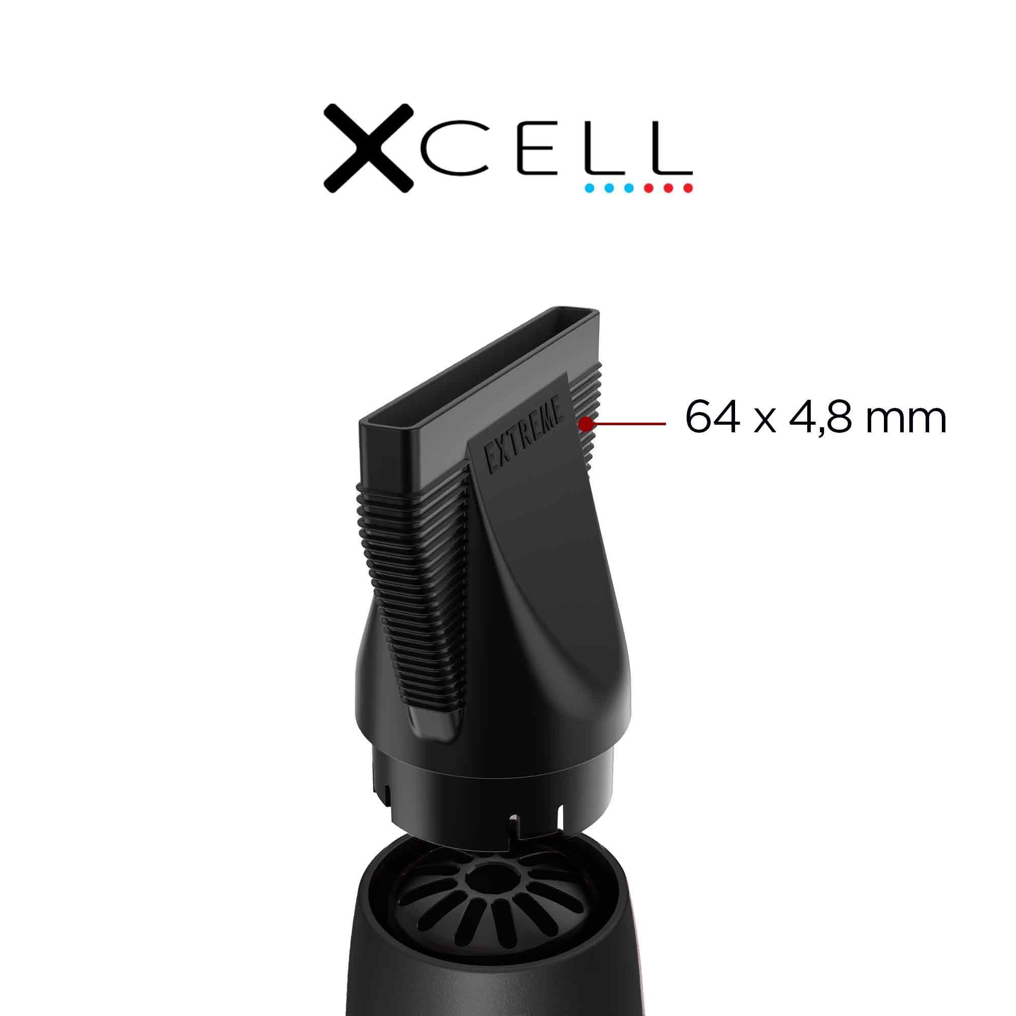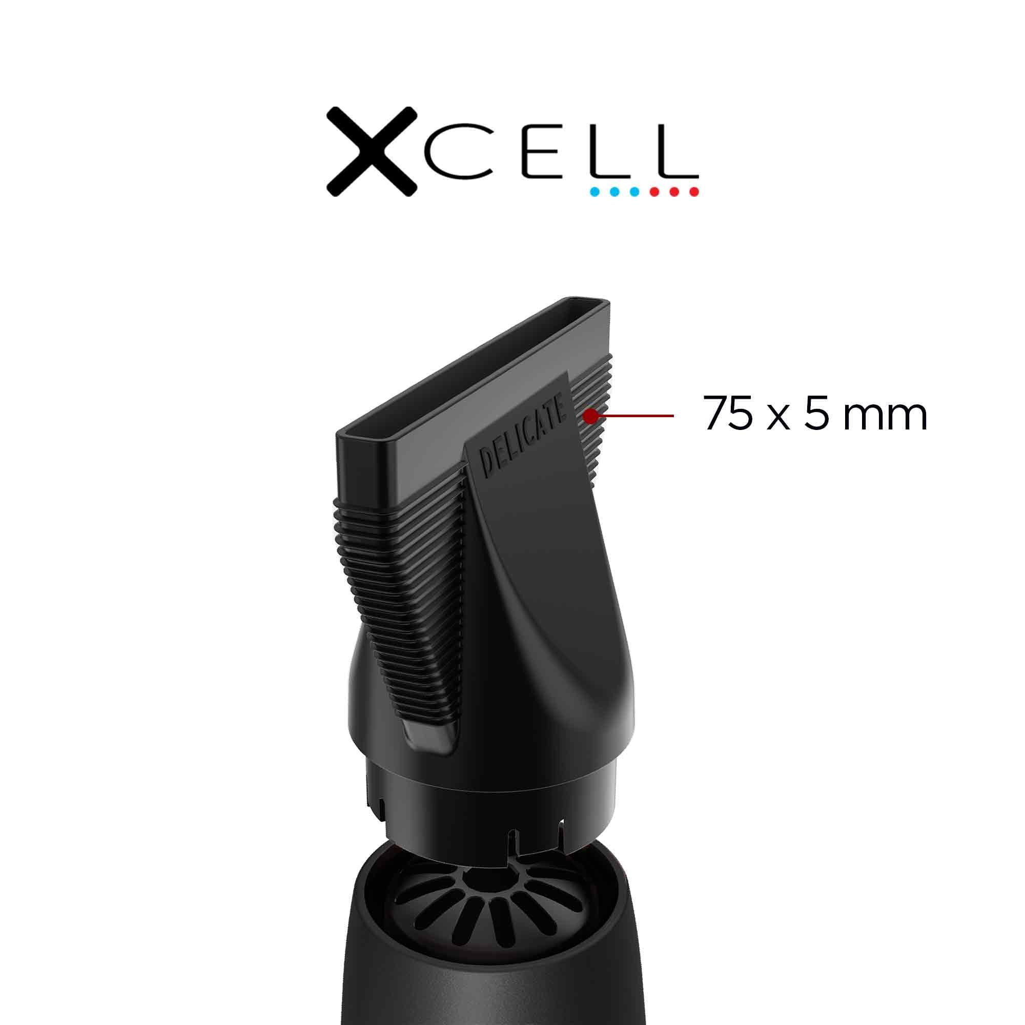 The GAMMA+ Xcell Professional Hair Dryer is a powerful and innovative tool for your hair care needs. Featuring a long-lasting digital motor operating at 110,000 rpm, it generates extreme air pressure for efficient drying. The 360° superior airflow and ionic technology work together to add shine, reduce frizz, and leave your hair smooth and healthy-looking. Designed with balance and comfort in mind, this ultra-lightweight and compact dryer includes a LED control interface with 12 heat and speed settings, ensuring a personalized styling experience. Engineered and crafted in Italy, the Xcell dryer comes with a 9-foot cord for increased flexibility.