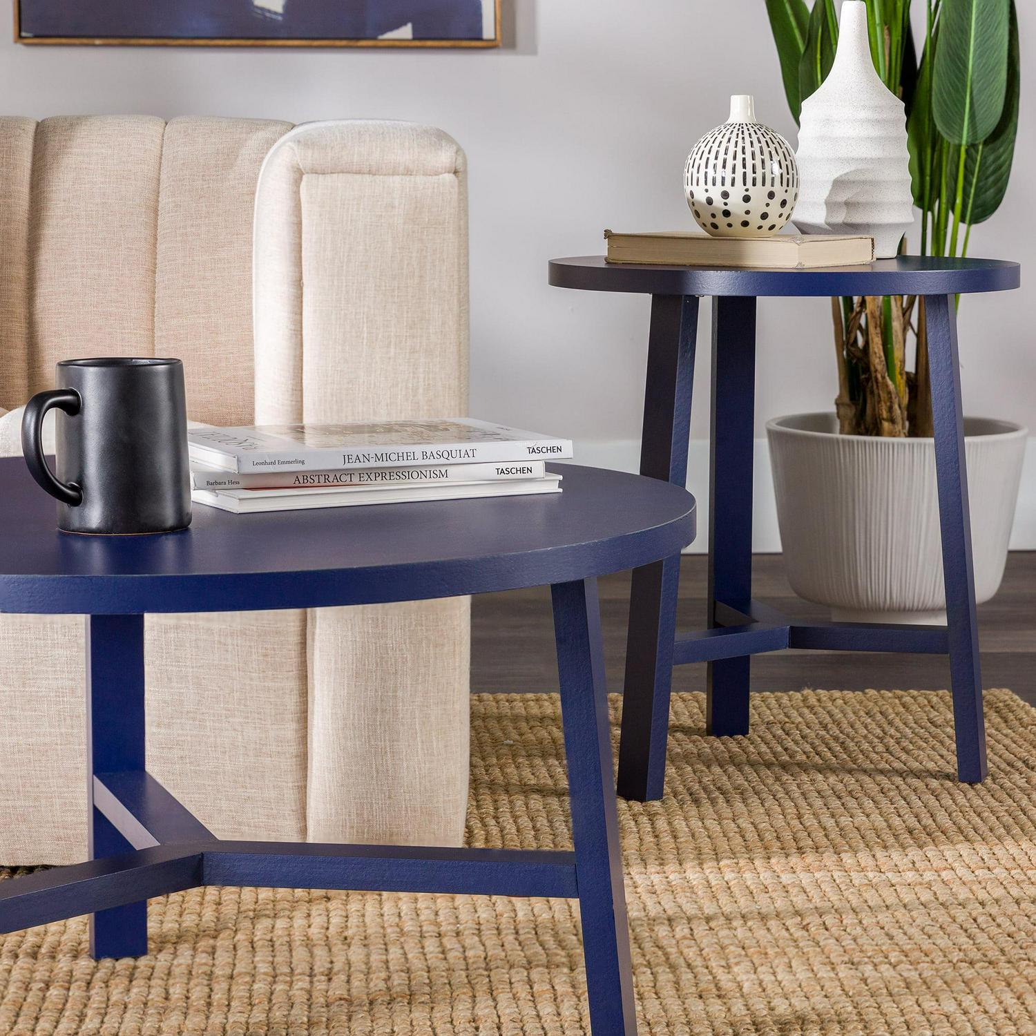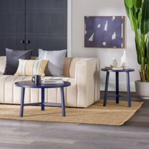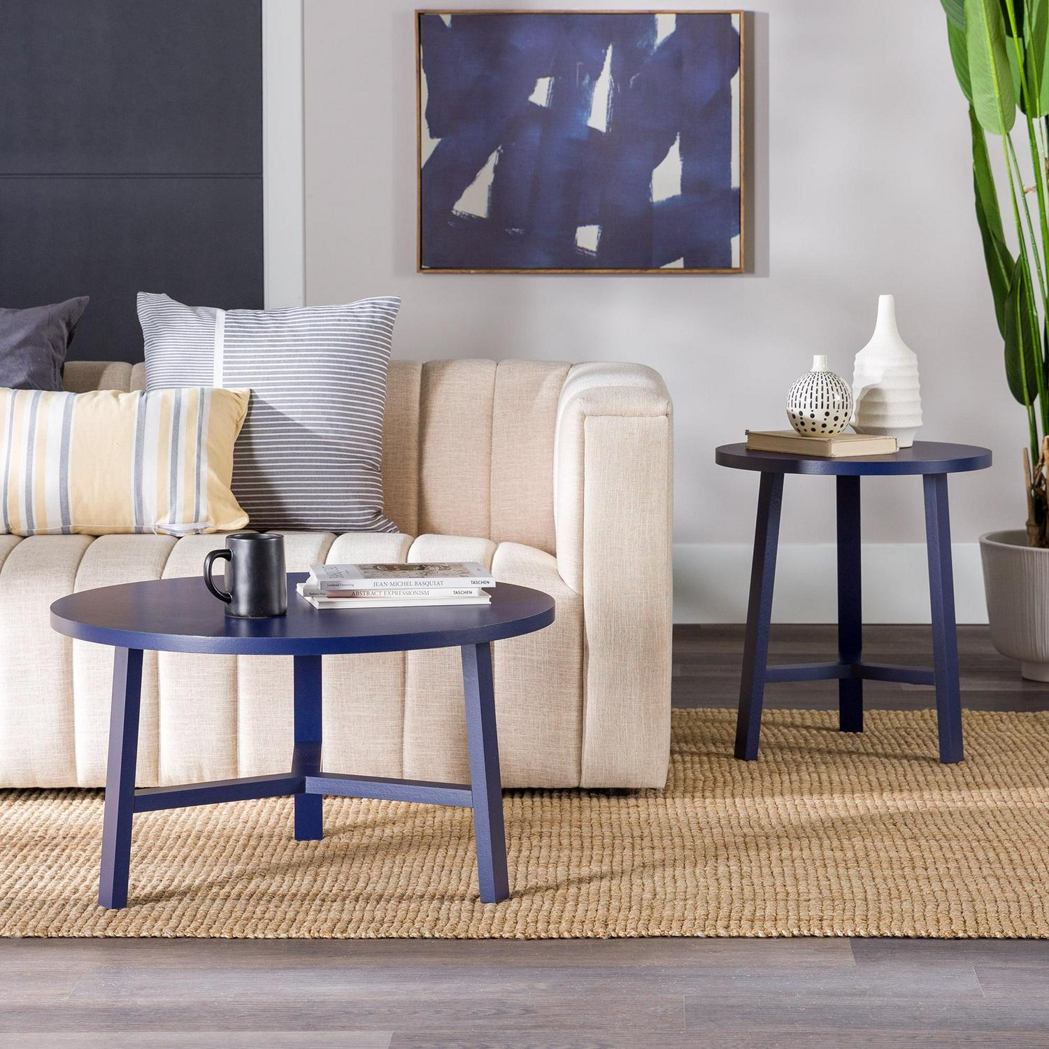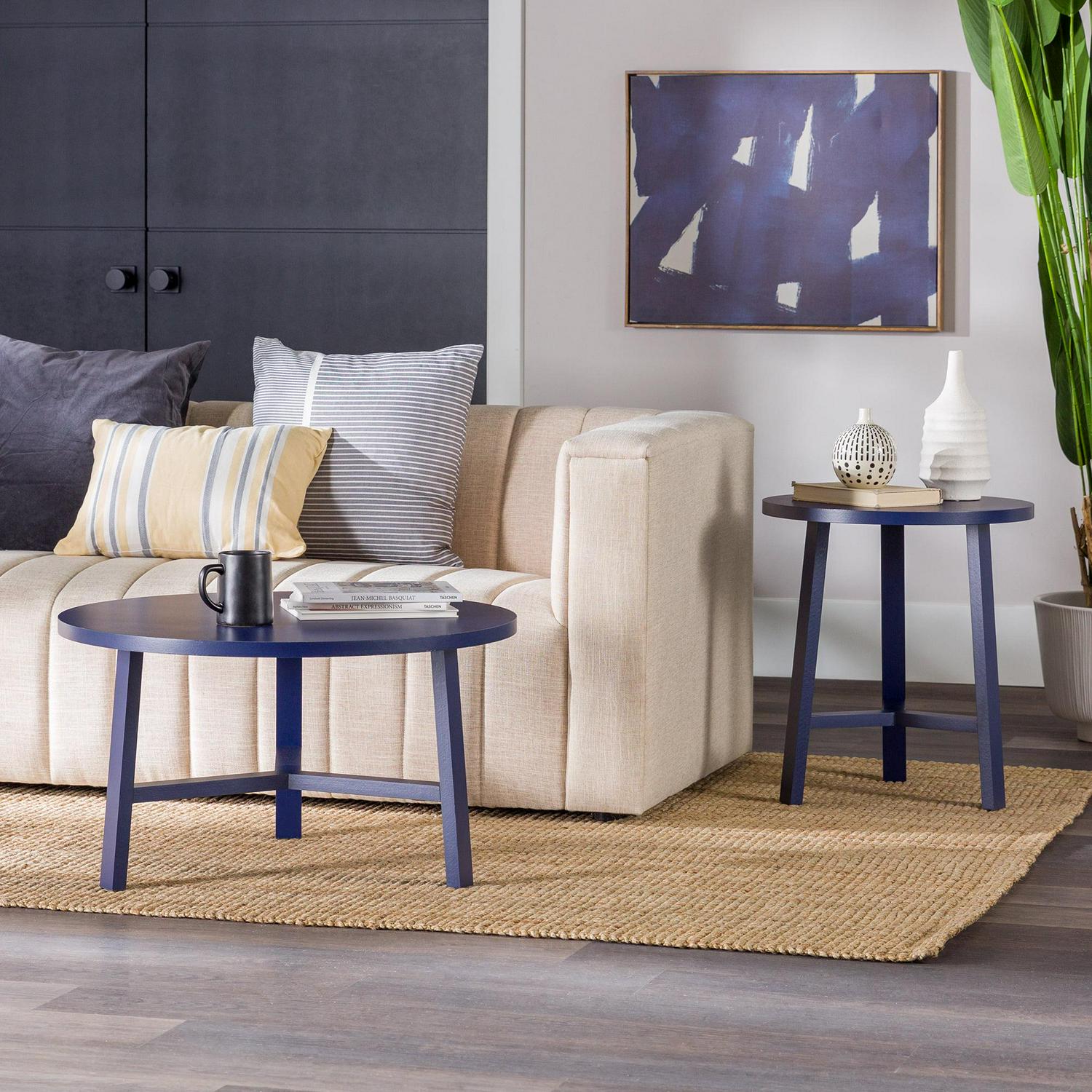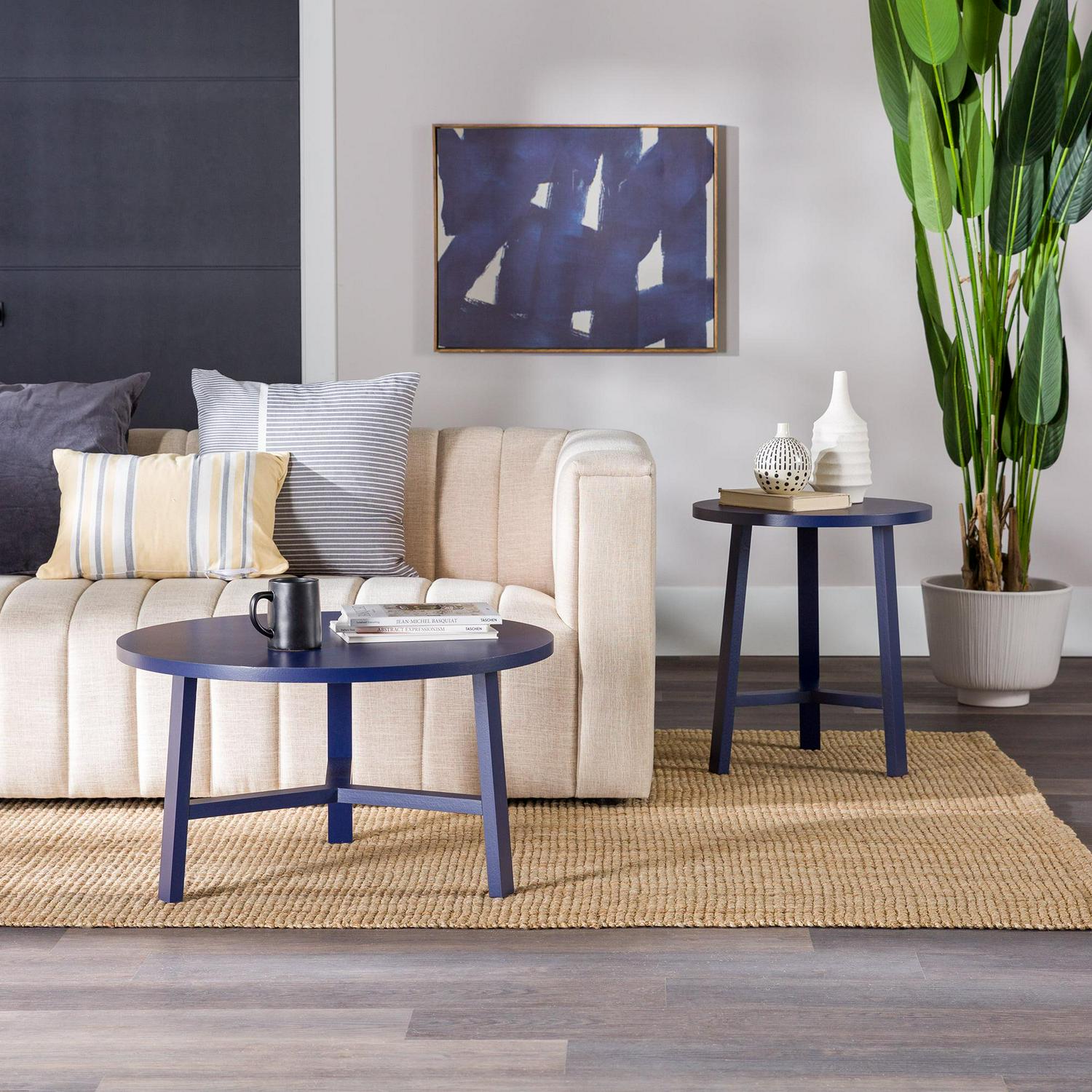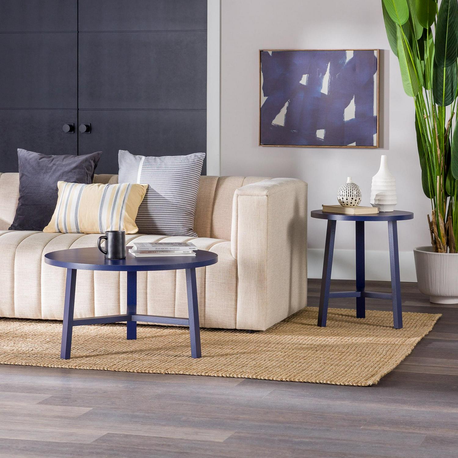 Gap Home Mid-Century Modern Simple 3-Leg Round Coffee and Side Tables, Set of 2, Blue:
