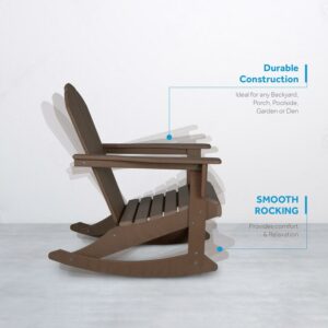 GARDEN Plastic Adirondack Rocking Chair for Outdoor Patio Porch Seating, Dark Brown