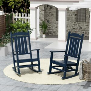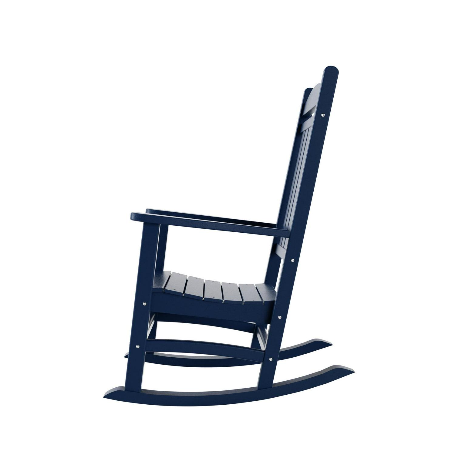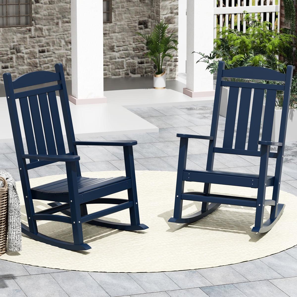GARDEN Set of 2 Classic Plastic Adirondack Porch Rocking Chairs, Navy Blue