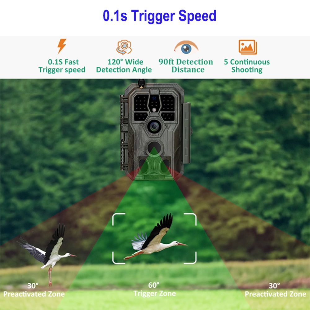 - 32MP Still Image and 1296P Video: Optical lens with wide 120° sensing angle and a cutting-edge image sensor, the A280W trail camera captures crystal clear 32MP pictures and 1296P or 1080P HD videos. The H.264 video encoding technology allows you preview videos and pictures on APP without having to download them firstly.