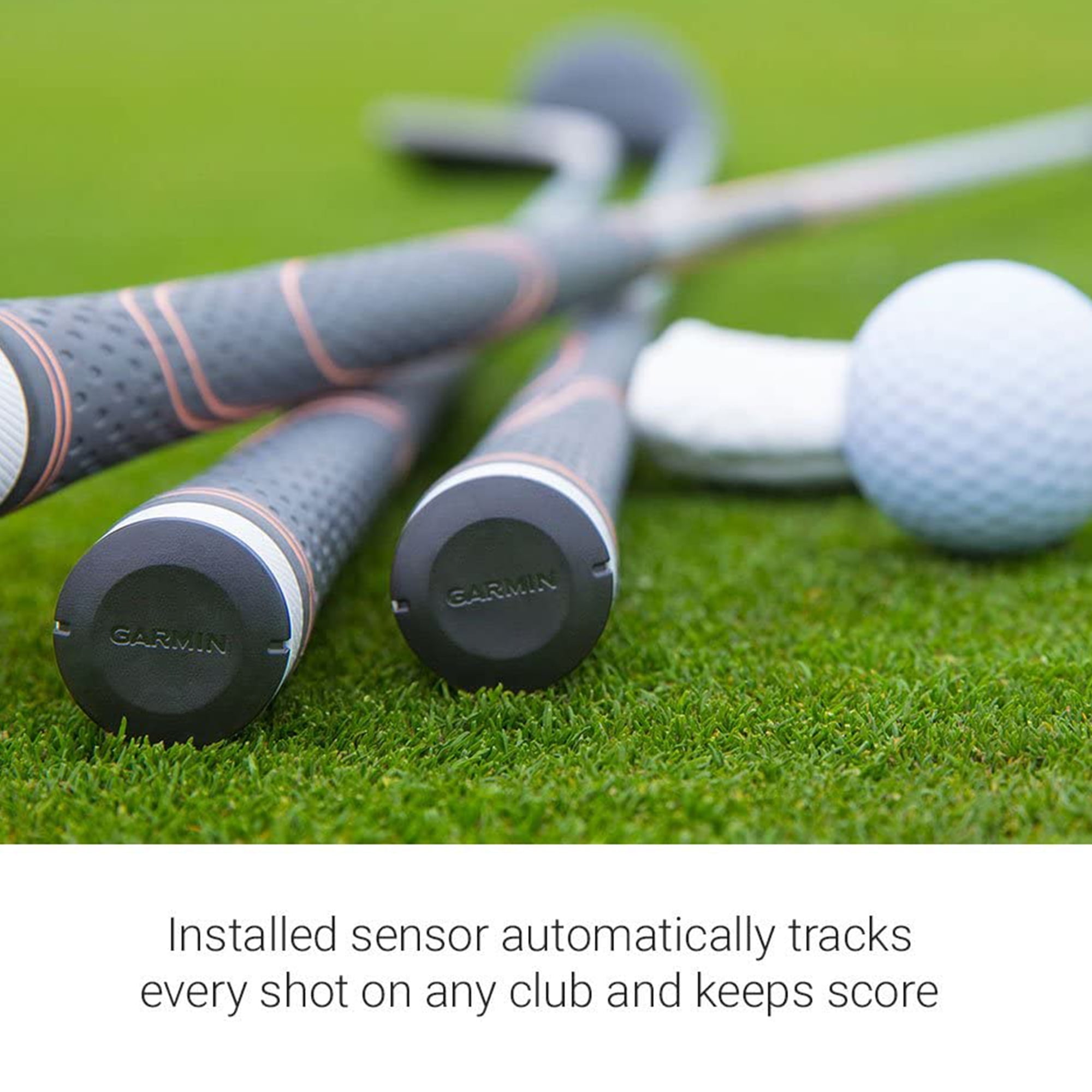 Improve your golf score with this set of 14 Automatic Golf Club Tracking Sensors from Garmin. This full set comes with 14 golf tracking sensors to track your swing so you can improve your score over time. Each sensor securely attaches to the end of your golf club’s grip and is lightweight, so you won’t even know it’s there. Pair these sensors to your compatible Garmin smartwatch and view your stats right on your wrist while you golf. After the game, pair the sensors with your smartphone and use the Garmin Golf app to view your overall stroke analysis, participate in leader boards and tournaments, and get more data about your game. This app also lets you compare your strokes to professional golfers to see how you stack up. A 4-year battery life and automatic on/off feature allow you to focus on your game. Batteries can be easily replaced when needed. Track your golf game with this set of 14 Automatic Golf Club Tracking Sensors from Garmin.