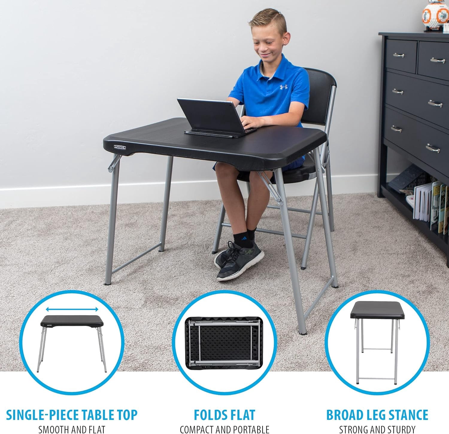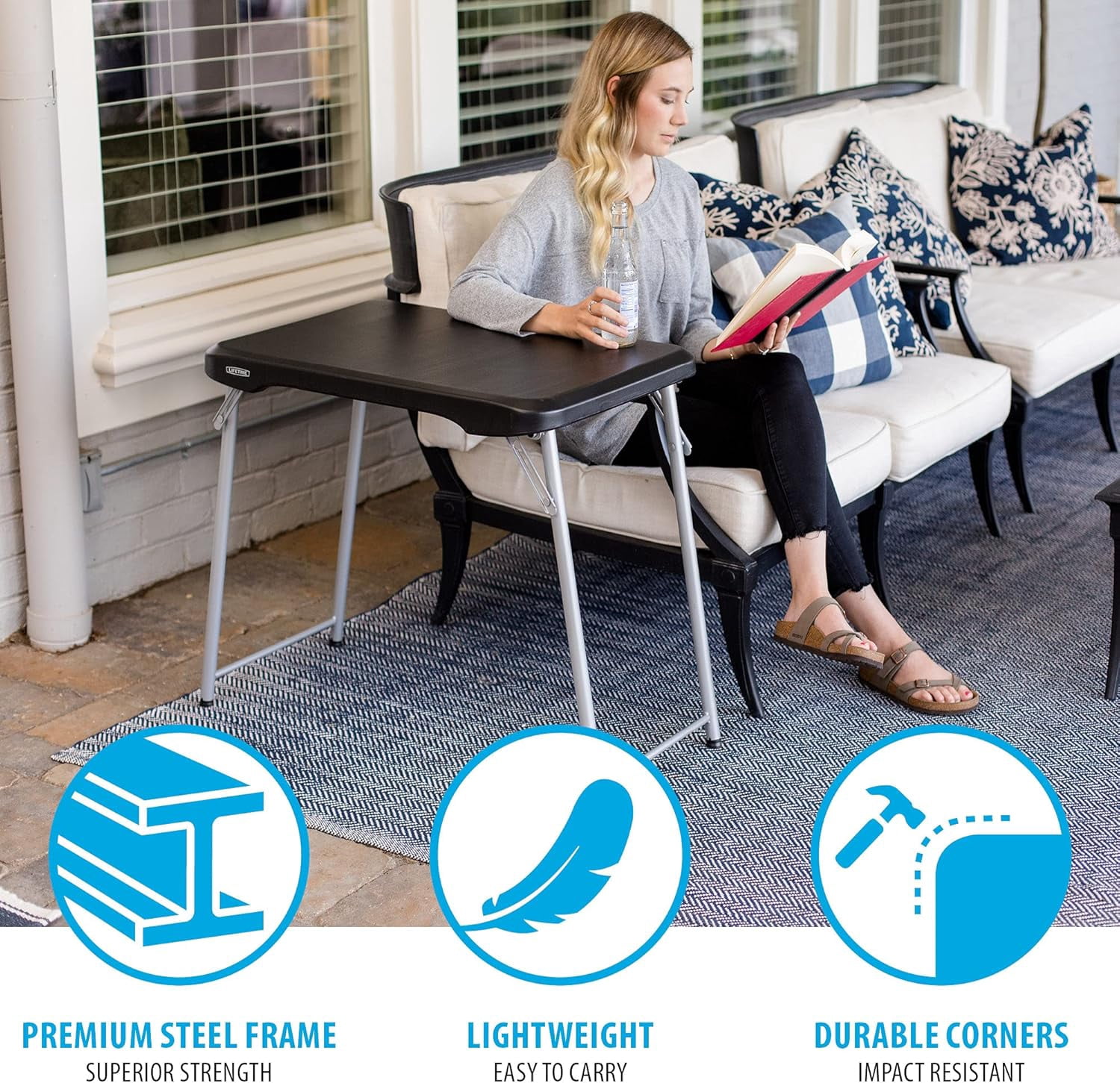 💎Broad Leg Stance – Creates superior stability 💎Convenient Carry Handle – High quality comfort during transportation. 💎Durable Table Top – Stain-resistant, UV-protected, and built to last. 💎Folds In Half – Excellent portability and storage from its compact fold. 💎Height Adjustable – Create a variety of settings for any occasion. 💎Adjusts to 18.5 in., 24.5 in., 29.5 in. 💎Impact-Resistant Corners – Engineered for superior durability and strength to prevent denting upon impact 💎Lightweight – Easy to lift and carr 💎Non-Marring Foot Caps – Prevents floor damage 💎Powder-Coated Frame – Rust-Resistant Steel 💎Push-Pin Mechanism – Press both push pins on the frame for easy setup or takedown