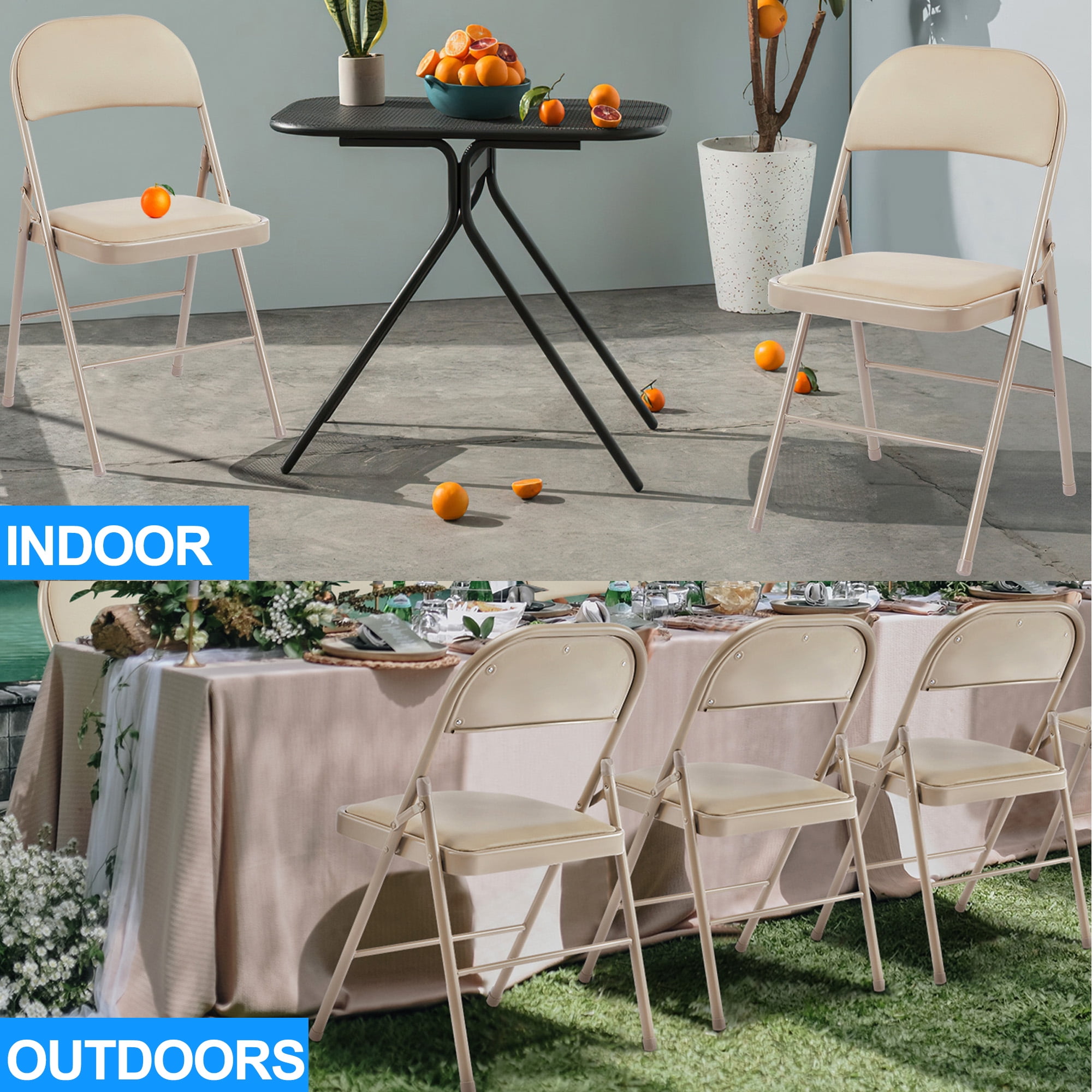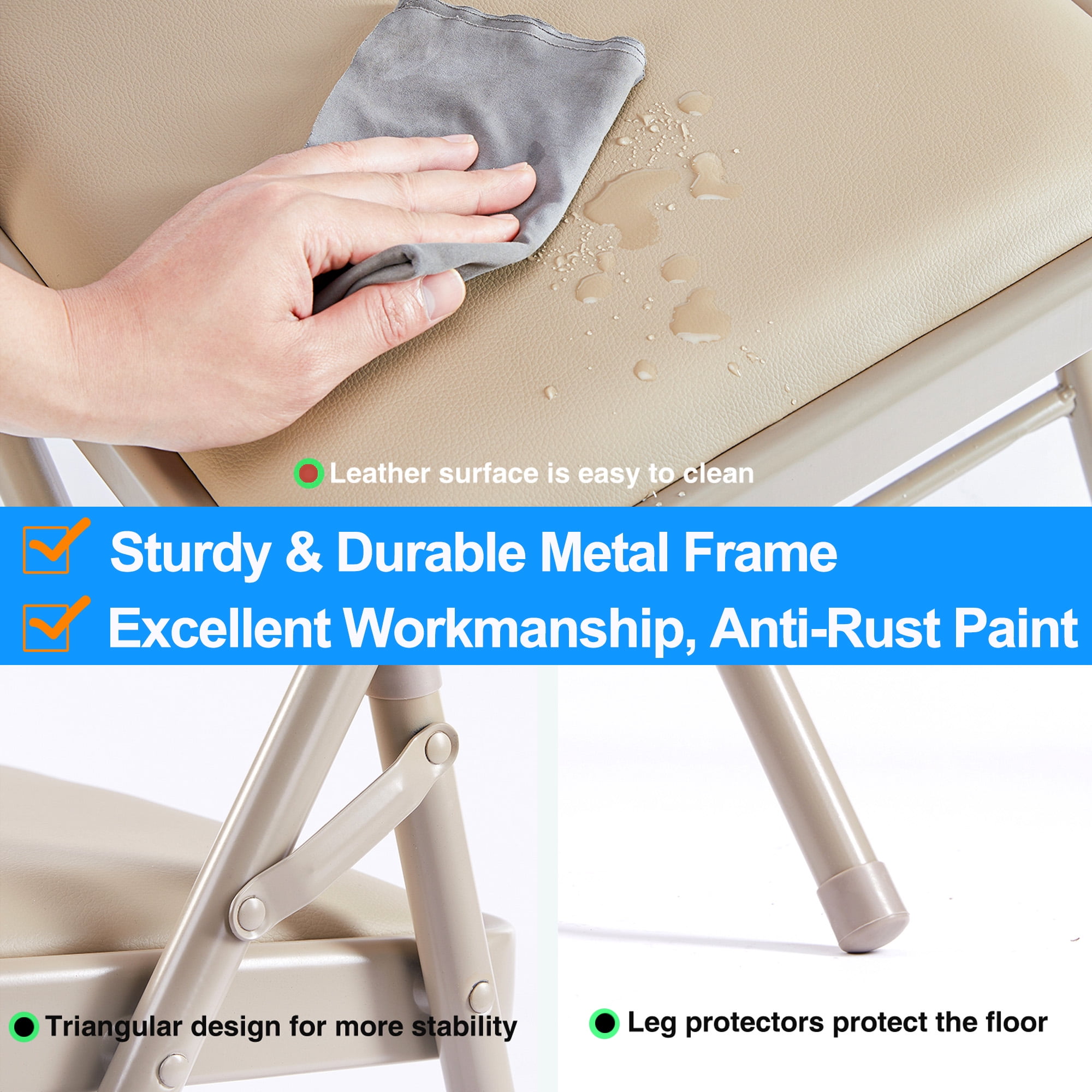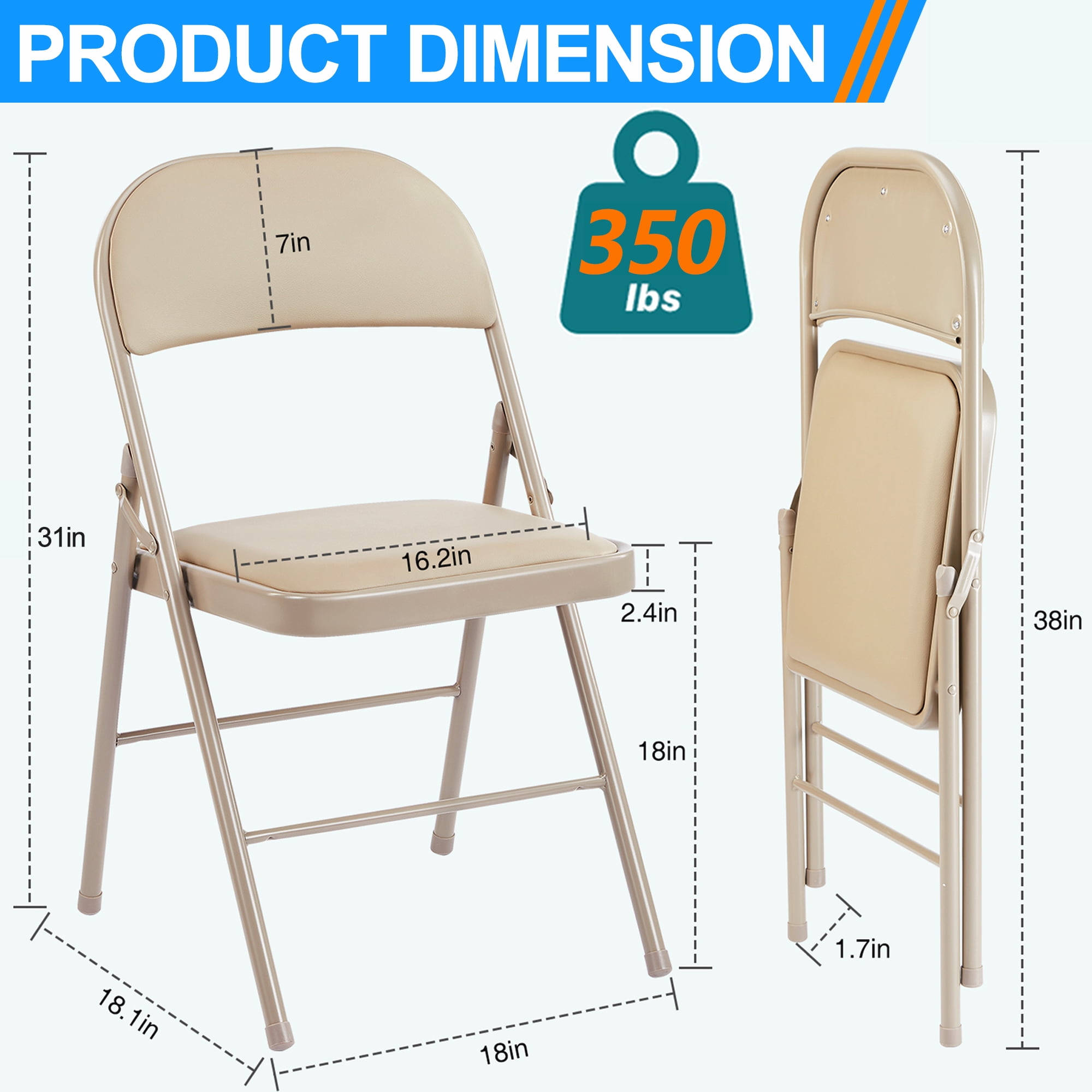 Vinyl Padded Folding Chair (4 Pack), khaki