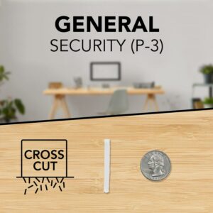– Secure Shredding (Level P-3) for day to day personal paperwork and emails. Cross Cut shreds documents into 5/32″ x 1 3/4″ pieces.”