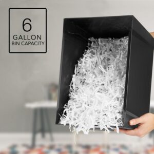 - 6 gallon bin provides plenty of shredding space. 6 minute run time