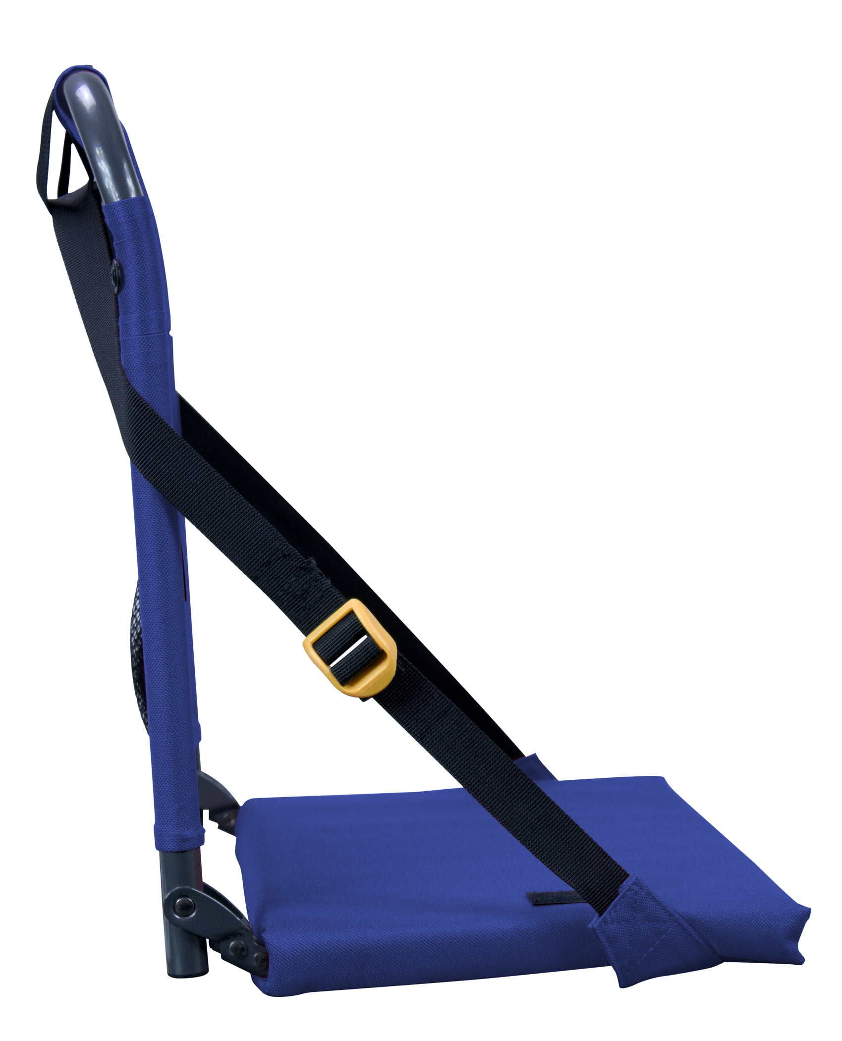 The BleacherBack? stadium seat fastens to stadium benches with the click of a buckle. BackComfort? Technology adjusts the backrest to unlimited reclining positions and a shoulder strap with Auto-Fold? Technology makes it easy to open, close and carry. The BleacherBack? is constructed of powder-coated steel and features a cushioned seat and storage pocket.