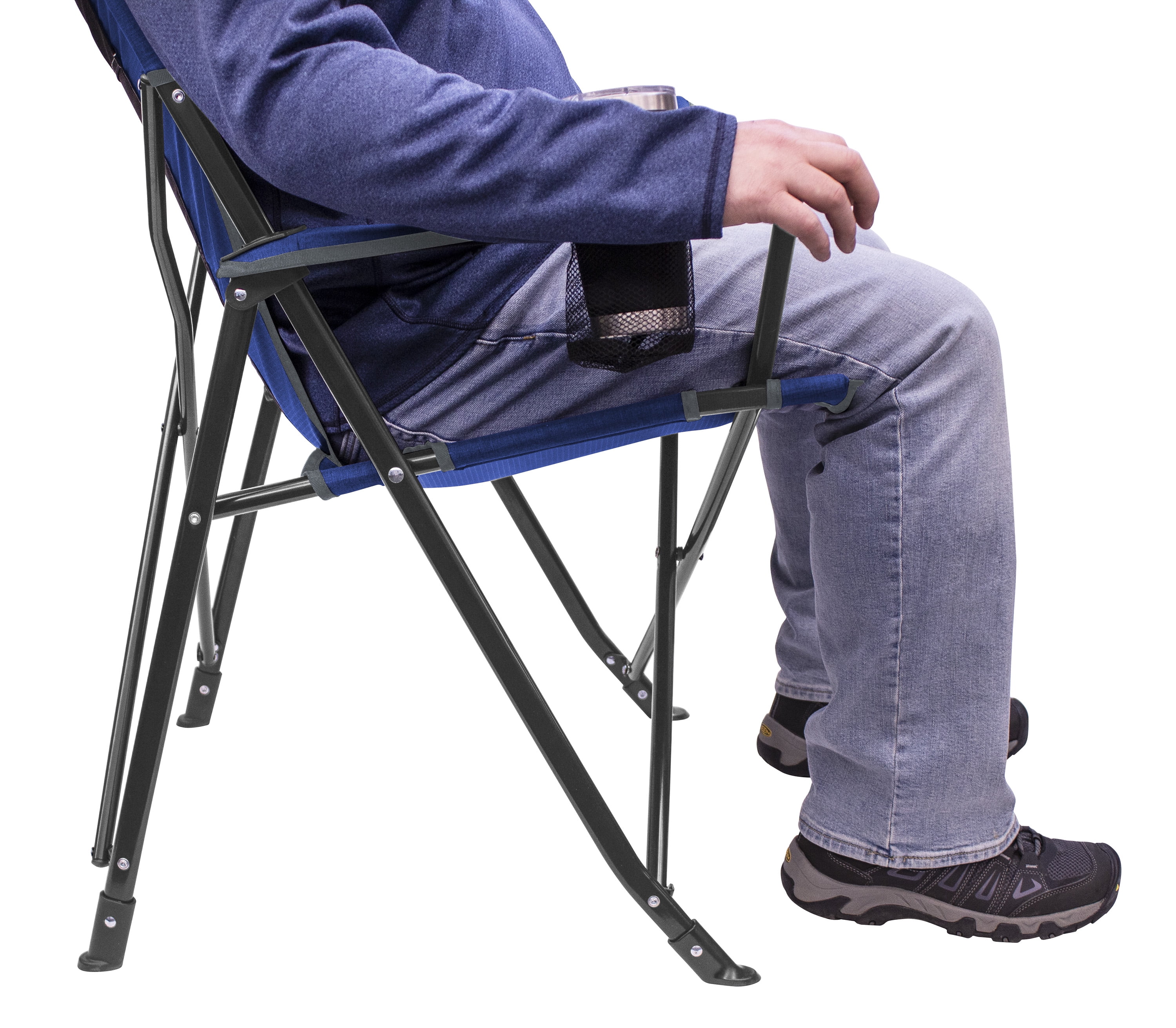 GCI Outdoor Comfort Pro Lightweight Folding Camping Chair, Heathered Royal Full-size folding chair perfect for any outdoor occasion Nylon mesh backrest for continual airflow Sturdy, powder-coated alloy steel frame provides durability Convenient carry bag for easy portability Beverage holder to keep drinks nearby Phone pocket so you never miss a call Limited lifetime warranty Supports 300 lb Seat Height: 20.7 in Item Weight: 7.7 lbs Adult chair