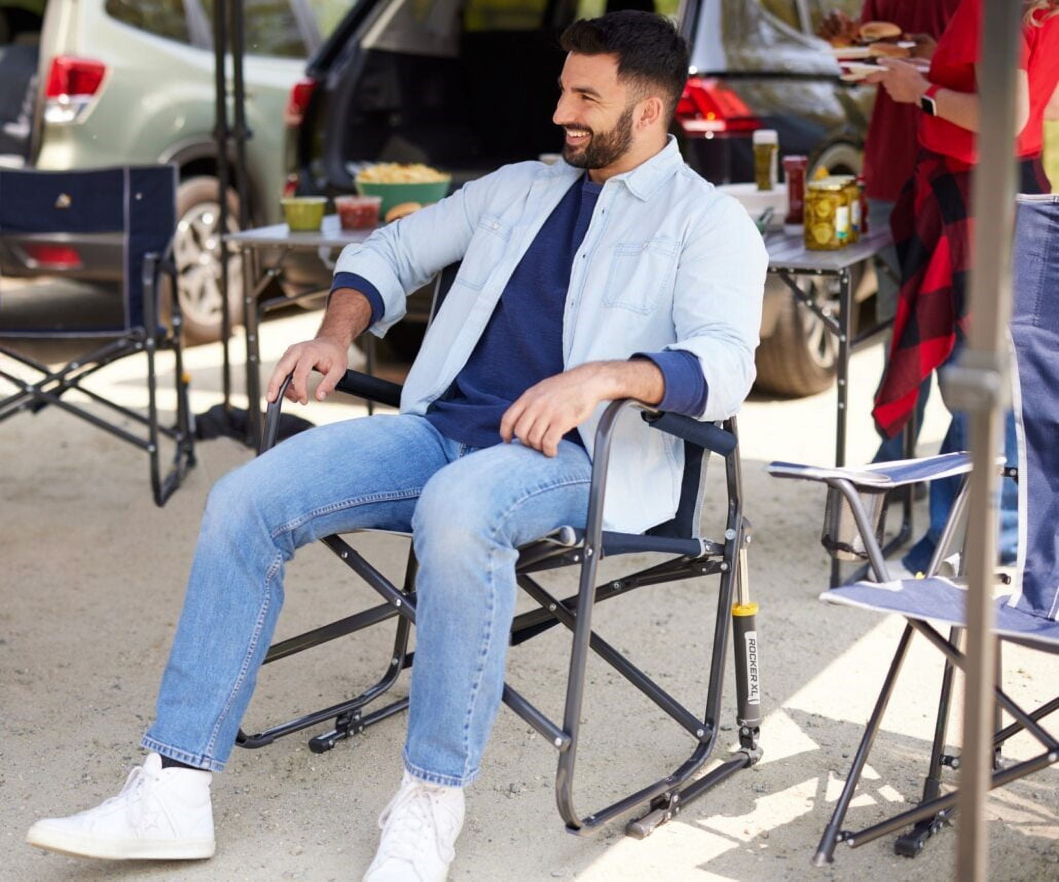 The GCI Outdoor Freestyle Rocker XL Heavy Duty Portable Folding Camping Chair combines innovation and EXTRA comfort with a broader and tougher frame. Featuring patented Spring Action Rocking Technology, you’ll enjoy smooth rocking and hours of relaxation outdoors whether on grass, gravel or sand. Constructed of a heavy-duty steel frame, the Freestyle Rocker XL outdoor chair is rugged enough to go wherever you go – whether it’s tailgating, cheering on the sidelines or sitting by the firepit. With a beverage holder and durable, nylon mesh backrest for continual airflow, you’ll stay cool in warm weather. This over-sized, adult rocking chair opens and closes easily with patented Eazy-Fold Technology, making setting up and packing up a breeze. This camping chair comes fully assembled and includes a carry handle for portability. The GCI Outdoor Freestyle Rocker XL is backed by a limited lifetime warranty, so you can fully experience your outdoor adventures worry-free.
