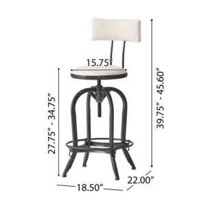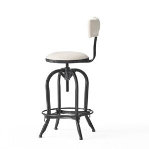 GDF Studio Mission Modern Industrial Upholstered 28 Inch Swivel Backed Barstool, Off White and Antique Black