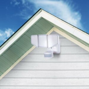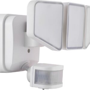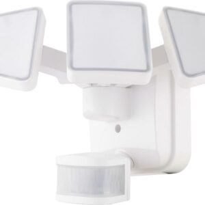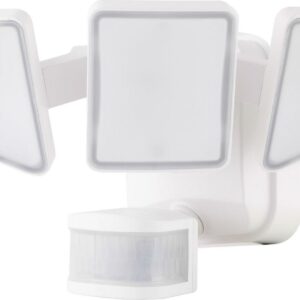 – White finish, three-head multi-position spotlight: up to 3100 lumens, providing quality security light in areas where needed. Weather-resistant for permanent outdoor use, ideal for home, entry, porch, patio, driveway, garage, and more.