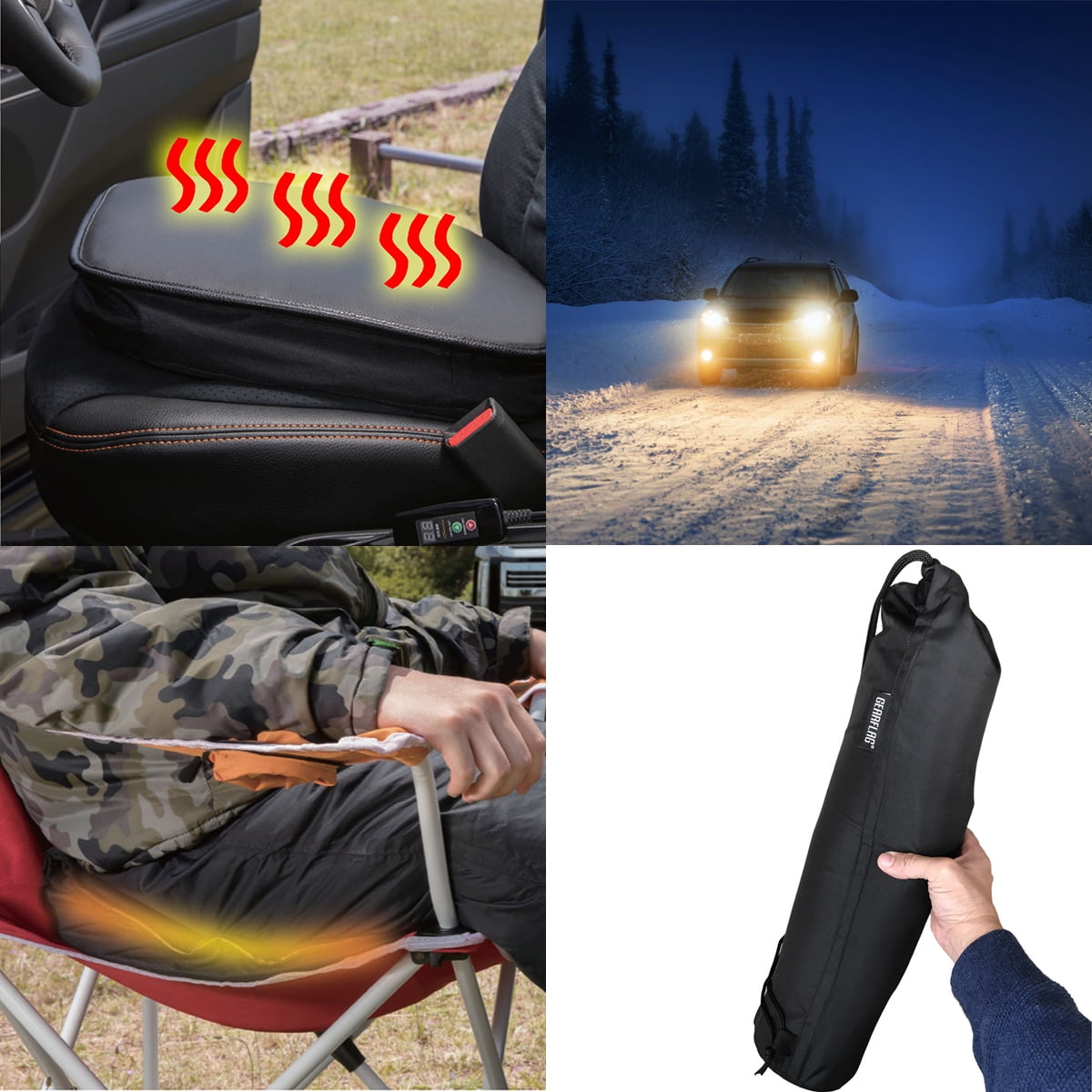 GEARFLAG Portable Heated Outdoor Seat Cushion, USB 5V powered, digital temperature control, winter outdoor, compact carrying bag, stadium, camping, hiking, hunting