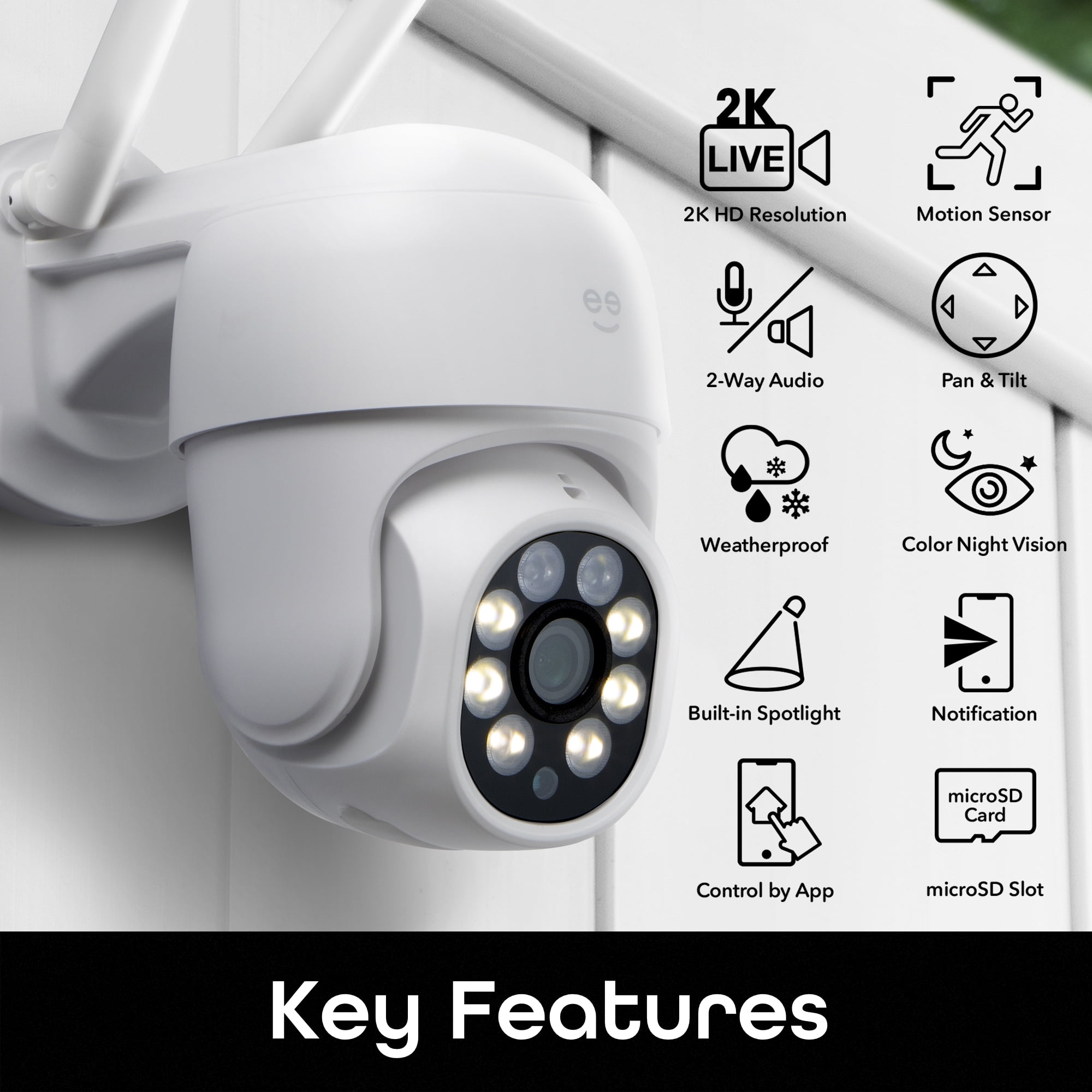 2K Quad HD Clarity: Witness every detail with stunning 2K Quad HD resolution for crystal-clear video day or night. Auto-Tracking: Stay focused on what matters with intelligent Auto-Tracking that follows movement within the camera’s field of view. Smart Spotlight: Enhance visibility in low-light conditions with the integrated Smart Spotlight, automatically illuminating when motion is detected. Experience clear and vibrant images in low-light conditions with Color Night Vision. Motion Detection with Weatherproof Design: Engineered for all seasons, the Geeni Lookout is weatherproof, ensuring reliable operation in any outdoor environment. 2-Way Audio: Engage in clear communication using the 2-Way Audio feature, with a built-in microphone and speaker for seamless conversations. Voice Control with Amazon Alexa and Google Home: Enjoy hands-free control with compatibility for Amazon Alexa and Google Home, allowing convenient voice commands for camera management and live footage access.
