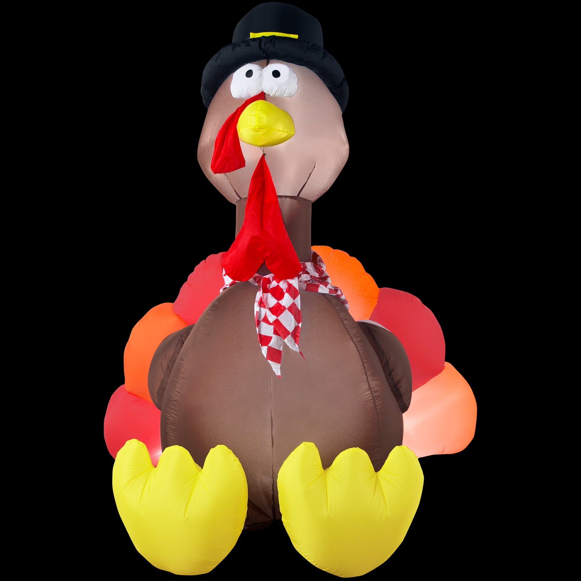 Give your scary haunted mansion a fun new twist with the 6′ Halloween Airblown Turkey with Lights. This fun turkey is ready to spread a smile on all the little ghouls, ghosts, zombies, werewolves and other creatures that might visit your place. Made of nylon, it’s easy to maintain too! Have it by your candy bowl while handing out treats or make him part of your trick-filled haunted house. Either way, it’s perfect for it all. Includes power adapter.