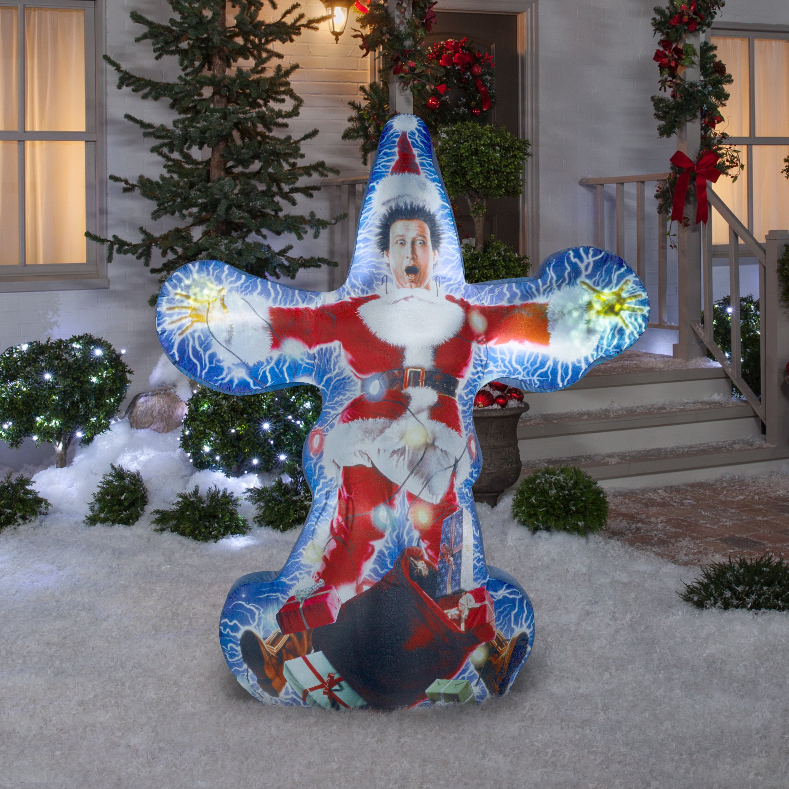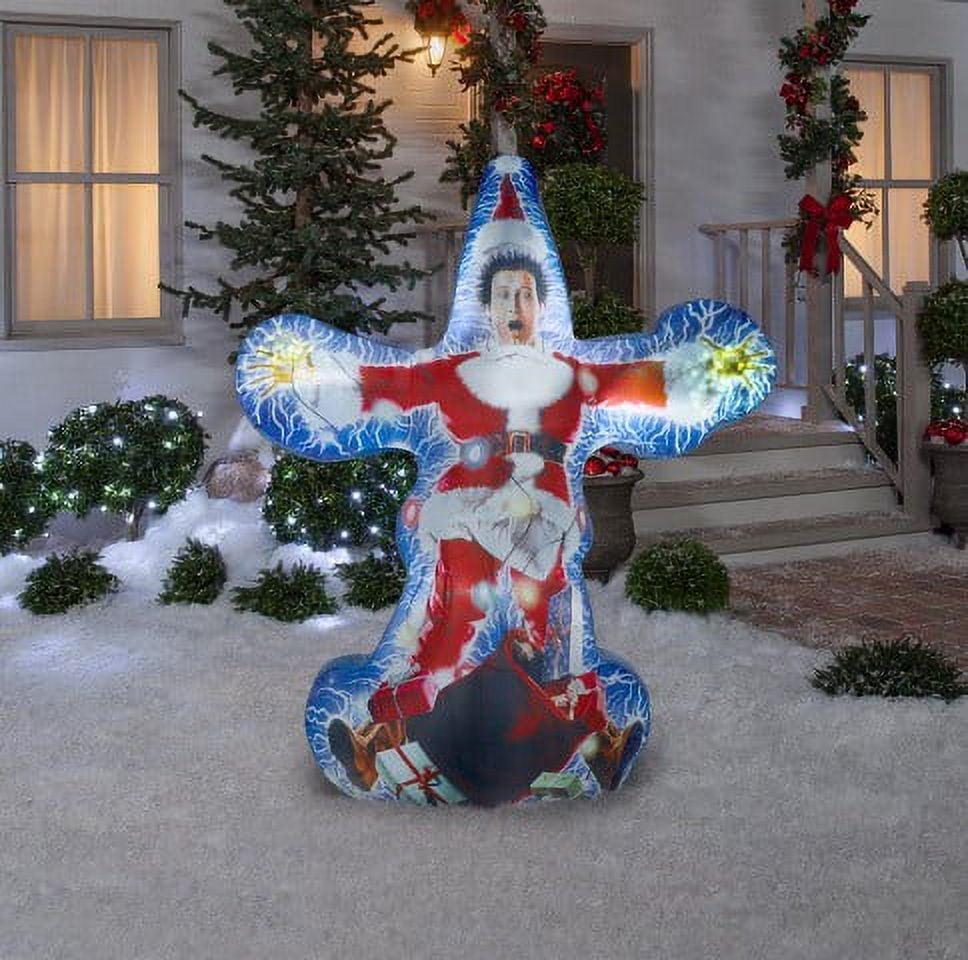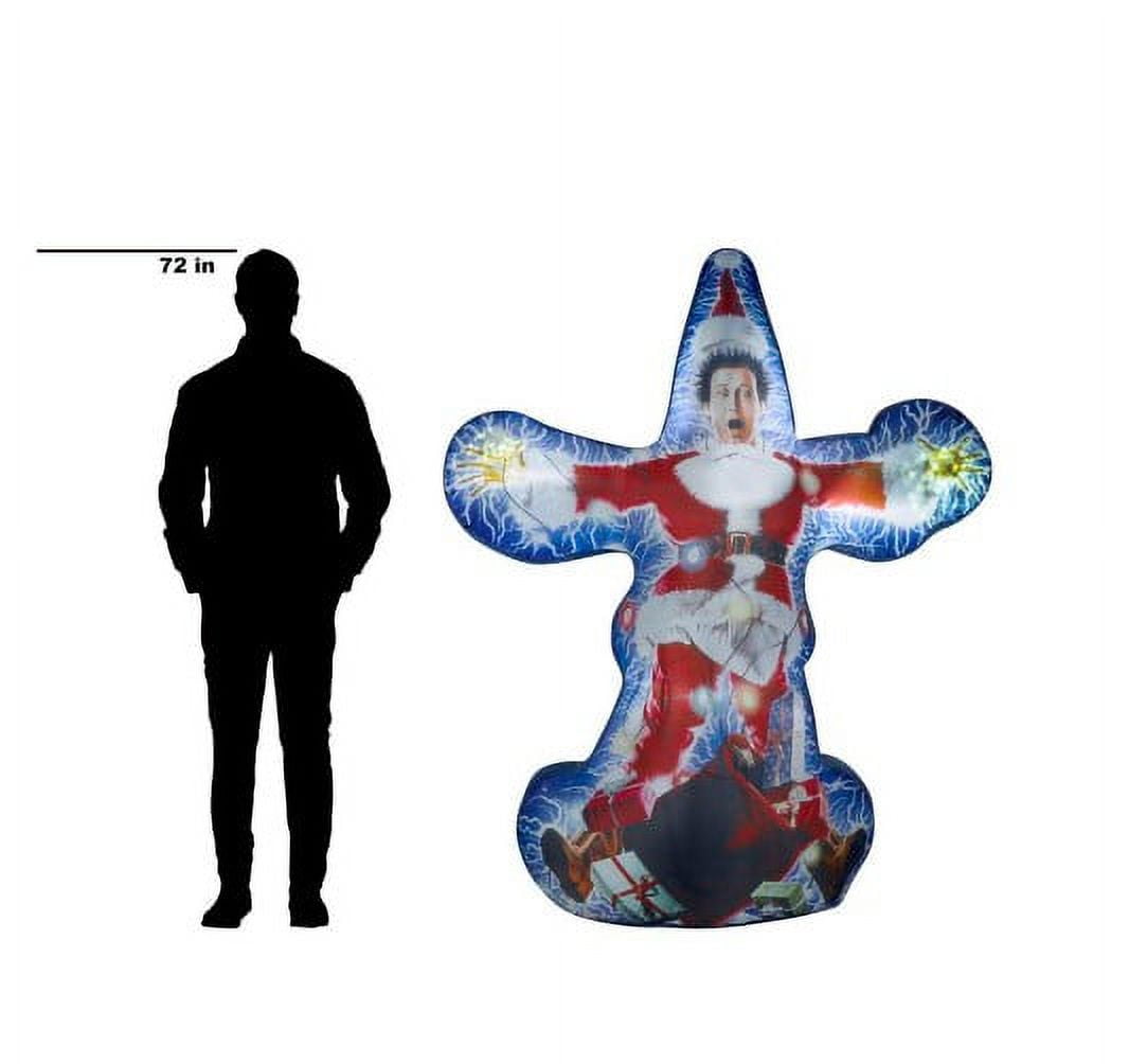 Gemmy Bulb Color: White Bulb Type: LED Design: Christmas Vacation Clark Number in Package: 1 pk Color: Multicolored Product Type: Christmas Inflatable Material: Polyester Brand Name: Gemmy Christmas Theme: National Lampoons Christmas Vacation Clark Sub Brand: Airblown Product Type: Inflatable Power Source: Plug-In License: National Lampoons Features kaleidoscope lighting in each of Clark’s hand Number of Lights: 8 lights Height: 72.05 in. Indoor or Outdoor: Outdoor Width: 25.20 in. Mounting: Ground UL Listed: Yes Power Source: Adaptor Flashing: No Length: 57.87 in. Christmas Motif: Other Certifications and Listings: N/A Light Features: Constant