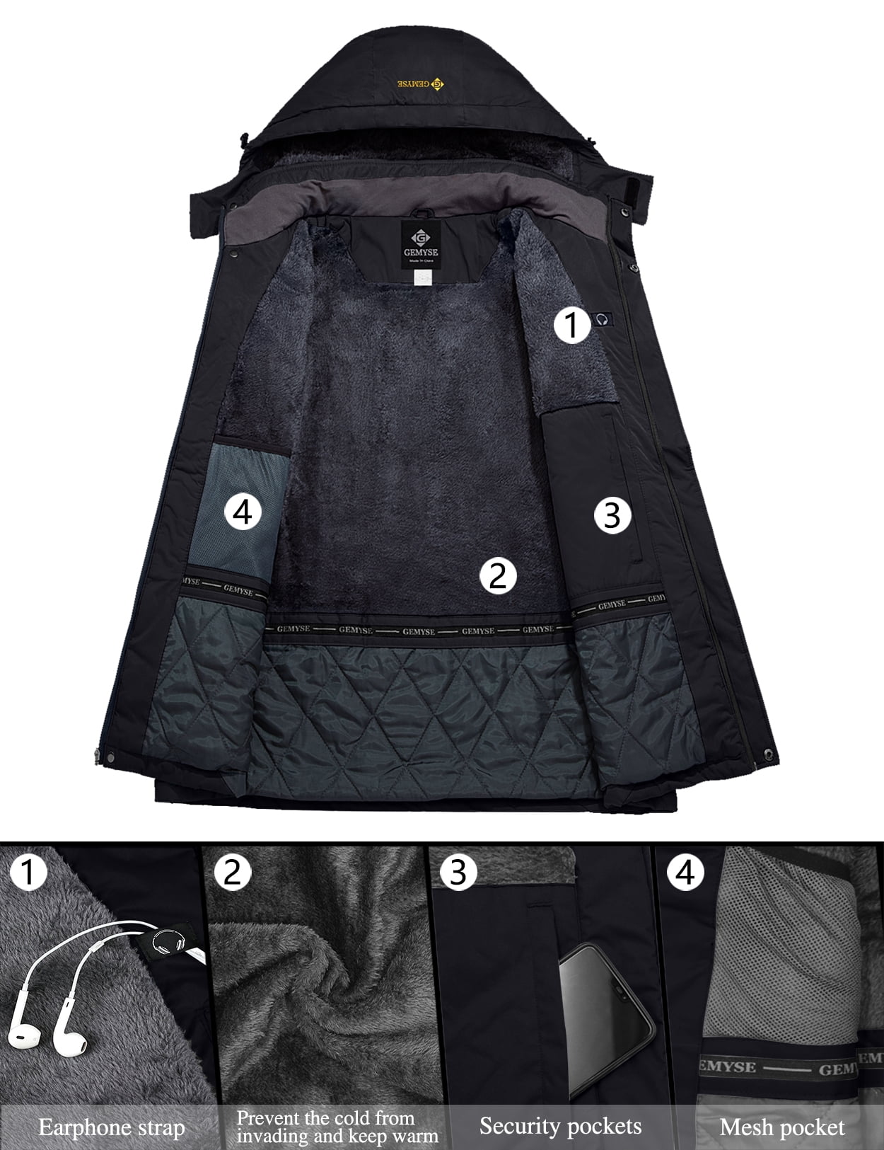 Versatile Outdoor Companion: Ideal for various winter activities like skiing, snowboarding, hiking, camping, and more, offering an essential and comfortable fit for active pursuits. Durable & Warm Construction: Crafted with a robust outer shell that’s wear-resistant and paired with a soft, insulating fleece lining. This combination ensures warmth and comfort in cold conditions while remaining breathable. Top-Notch Waterproofing: With professional water-repellent coating and waterproof zippers, this jacket boasts a 10000mm/H2O waterproof rating, ensuring effective protection against rain and snow, keeping you dry and cozy all day long. Windproof Design: Features such as adjustable cuffs, a detachable storm hood, and a windproof snap skirt inside effectively block out wind, maintaining warmth. The soft shell material is highly resistant to wind, adding an extra layer of protection. Functional & Secure Storage: Offers multiple pockets, including zippered hand pockets, a chest pocket, and internal compartments for essentials like phone, wallet, passport, and even has features like an earphone line fixture for added convenience. This jacket ticks all the boxes for durability, weather protection, and practicality, making it an excellent choice for anyone engaging in winter outdoor adventures.