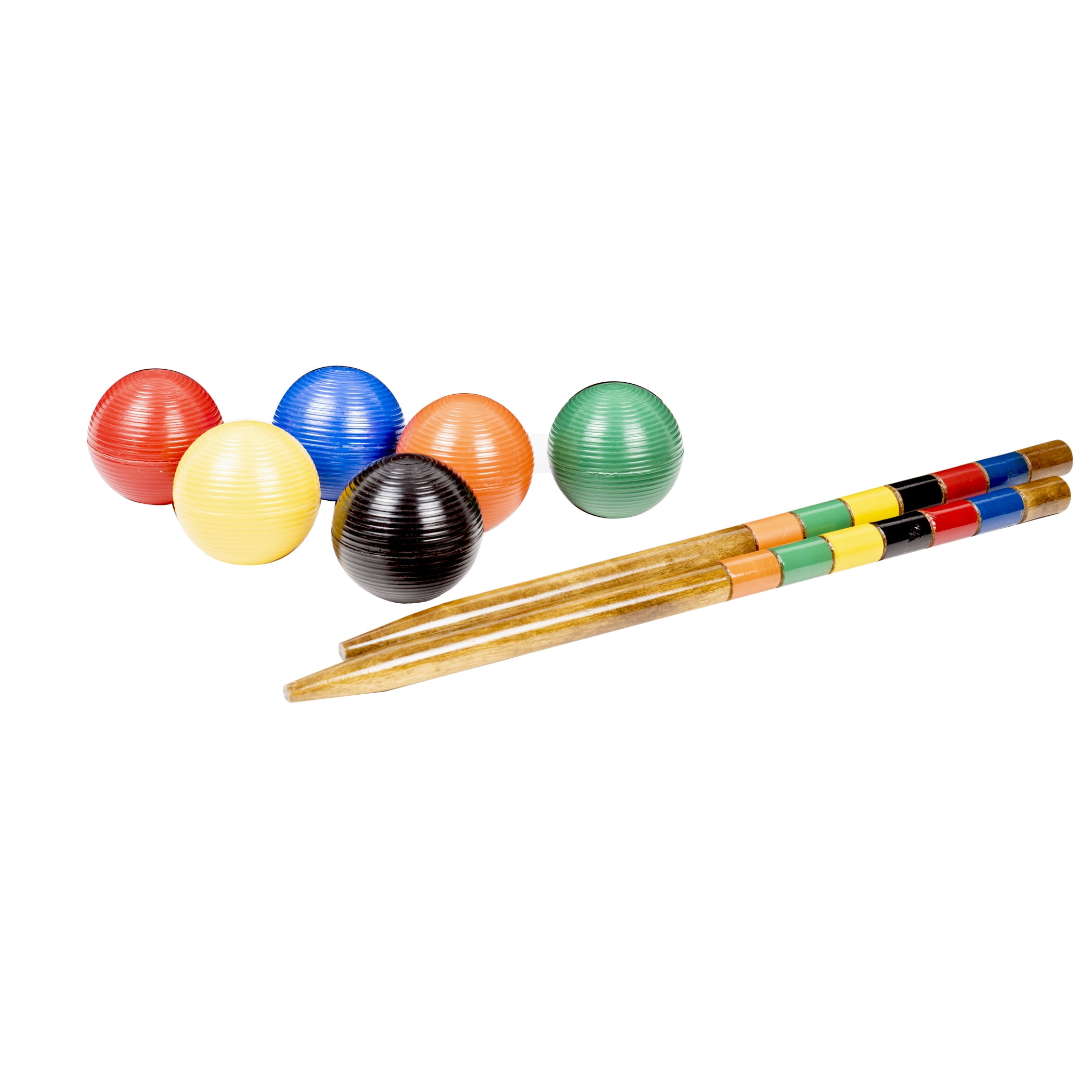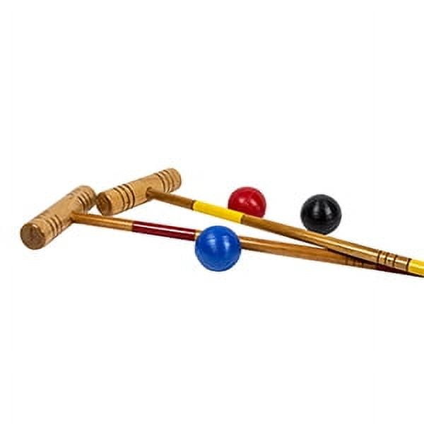 Gener8 #GS30077M Wood Croquet Set Includes: 6 Wood Mallets, 6 Wooden Multi-colored Balls, Travel Bag, 2 Wooden Stakes and 9 Metal Wickets 6 Players, Player colors include: Red, Blue, Yellow, Green, Orange and Black Travel Bag Included Great for Family Game Night, Picnics, Holiday Fun Portable Recommended for Children Ages 8 Years and up