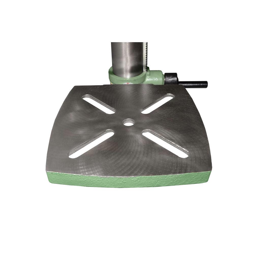Sturdy design with cast iron base and head; high-quality bearings for smooth, vibration-free operation; crank-operated rack and pinion table height adjustment