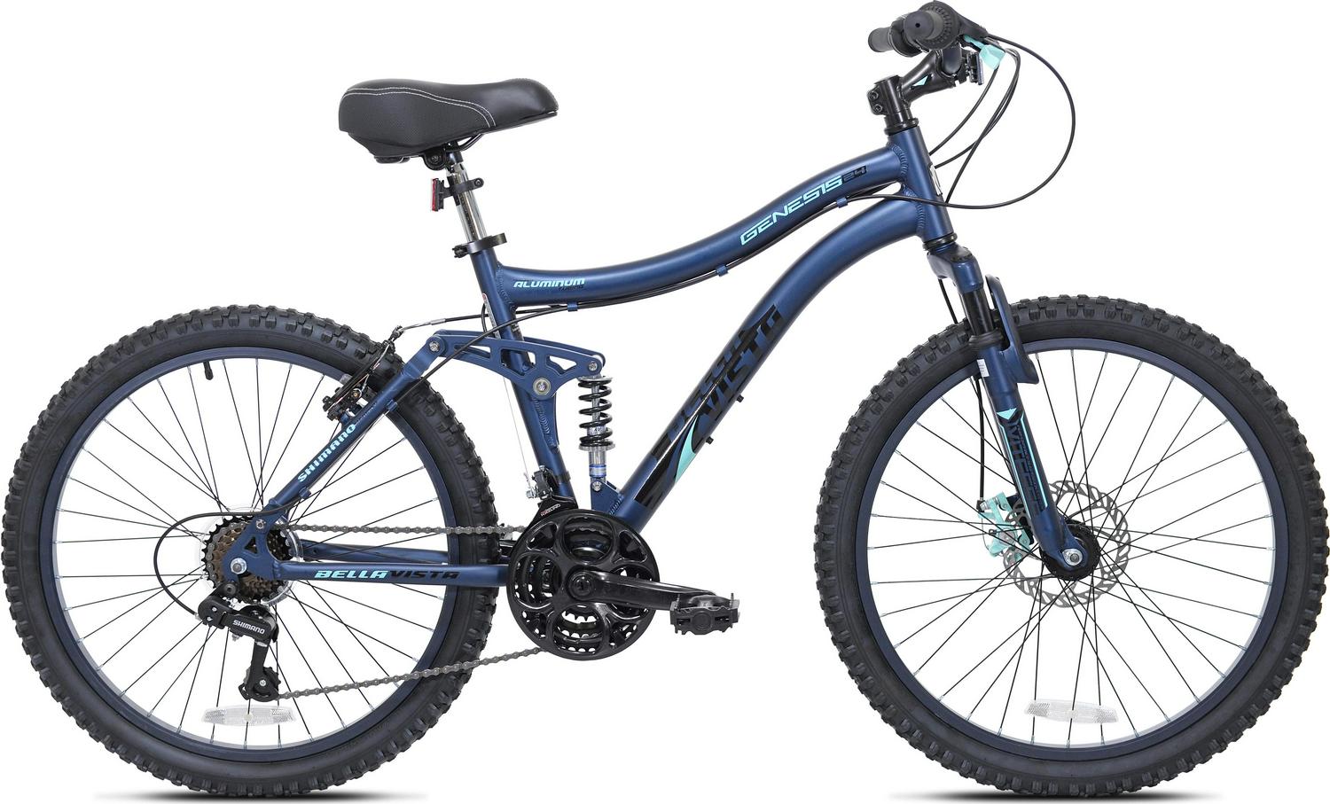 Genesis 24 Bella Vista Girl’s Full Suspension Tween/Teen Mountain Bike, Blue