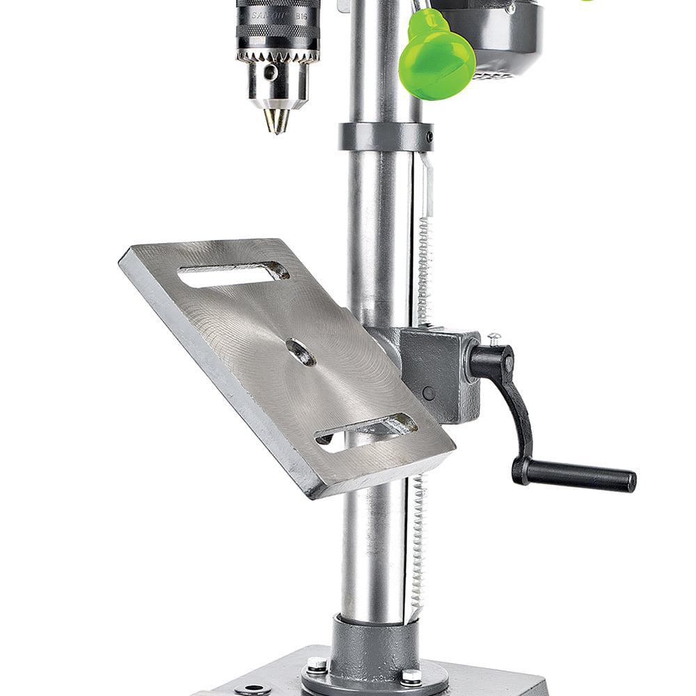 – 0-45 degree tilting square work surface for precise and accurate drilling