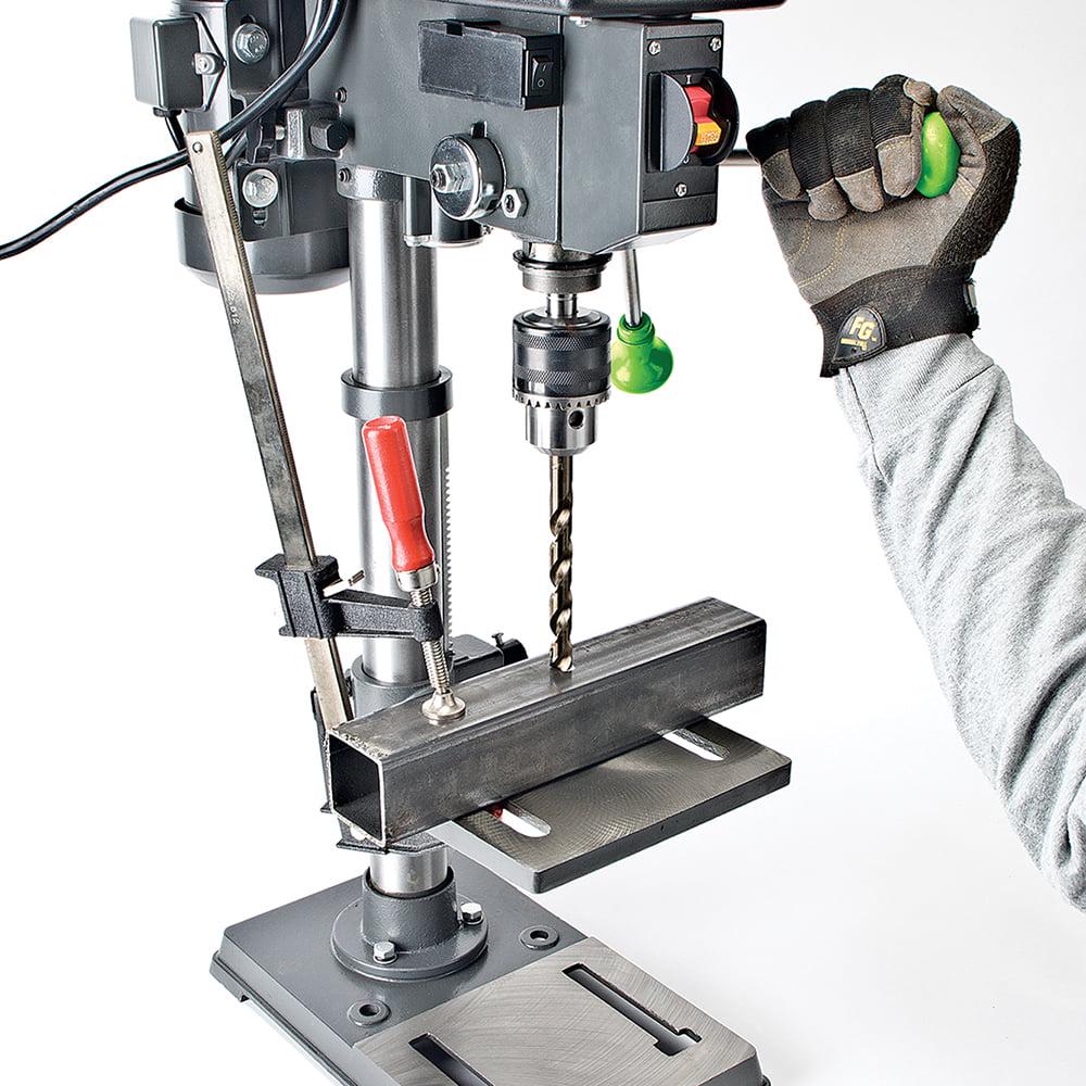 - 0-45 degree tilting square work surface for precise and accurate drilling
