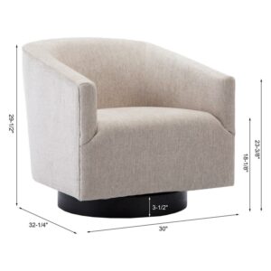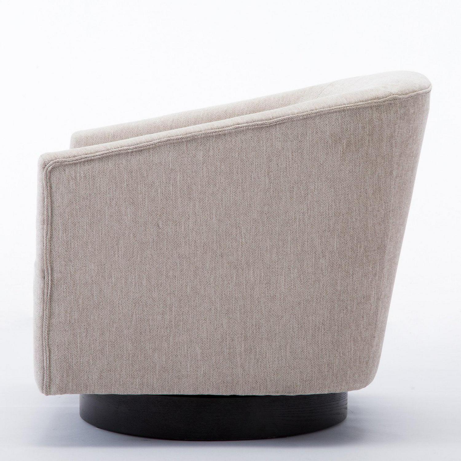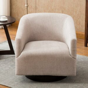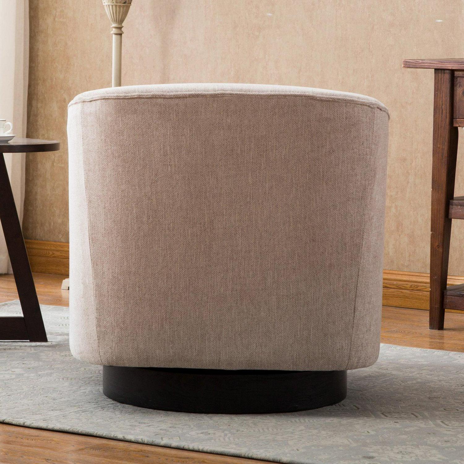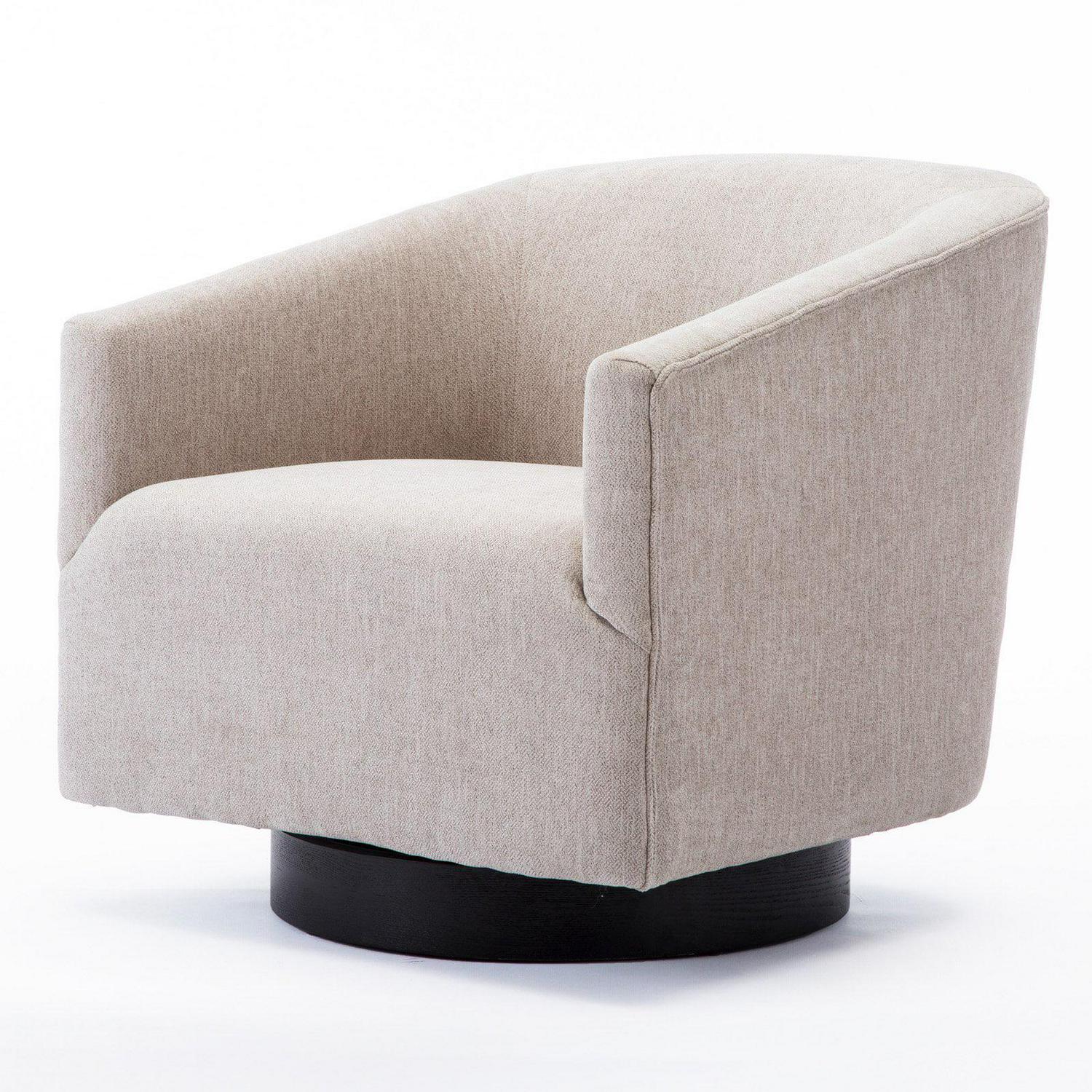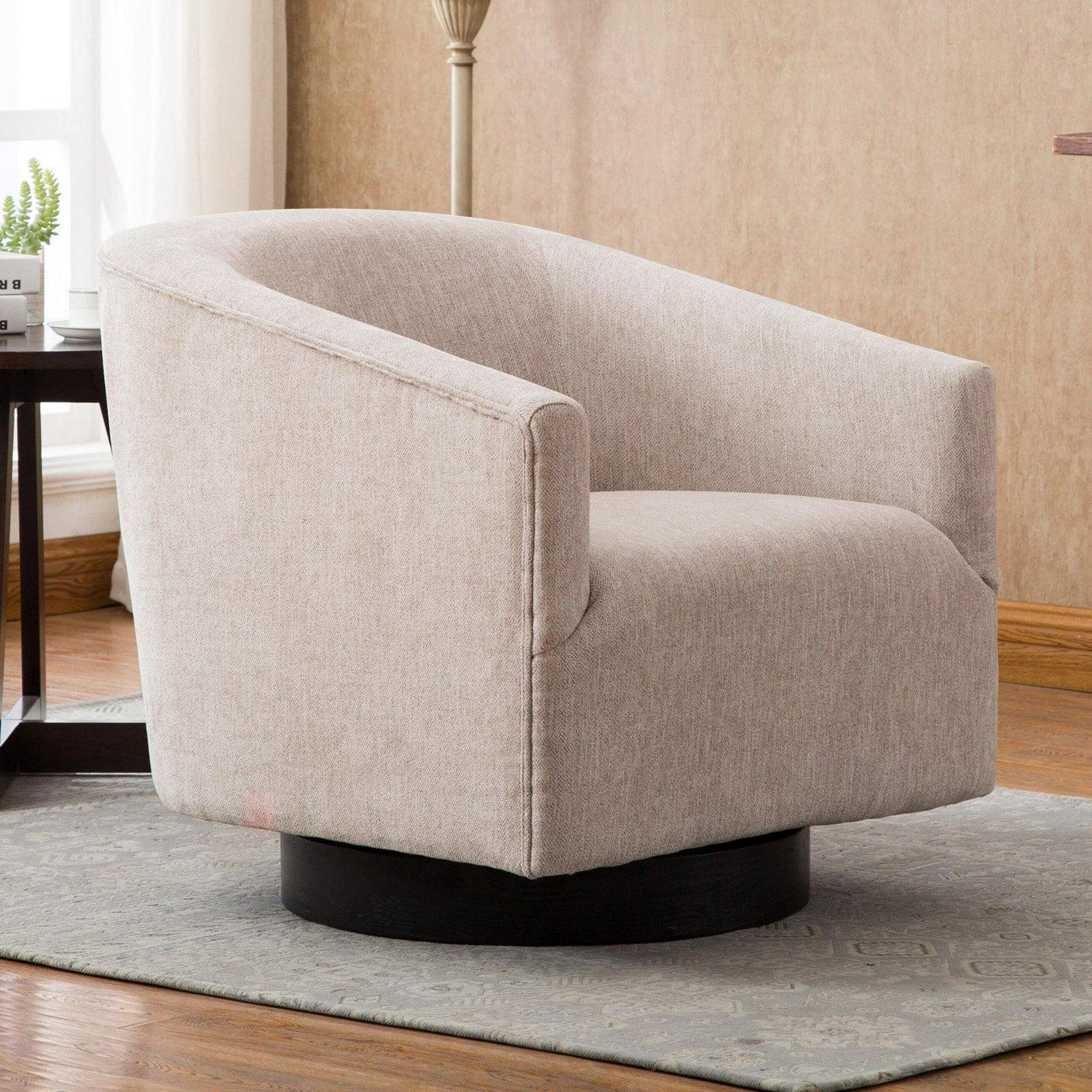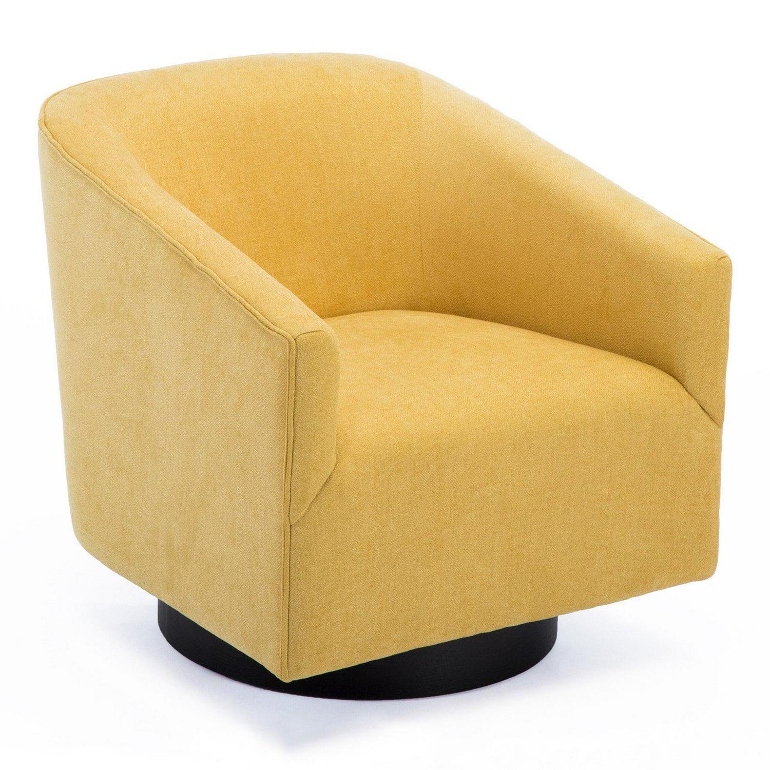 Complement your living room decor with the versatile and comfortable design of the Goldenrod Wood Base Swivel Chair. Made with a solid wood frame and upholstered in easy to clean durable fabric, this swivel chair will create a cozy, contemporary look for years to come.