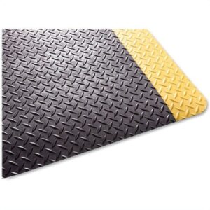 Anti-fatigue mat is made of chemical-resistant, nonflammable 9/16″ thick material with beveled edges and yellow borders for additional safety. Ideal for workshops and factories. Grease-resistant and oil-resistant design helps prevent slips.