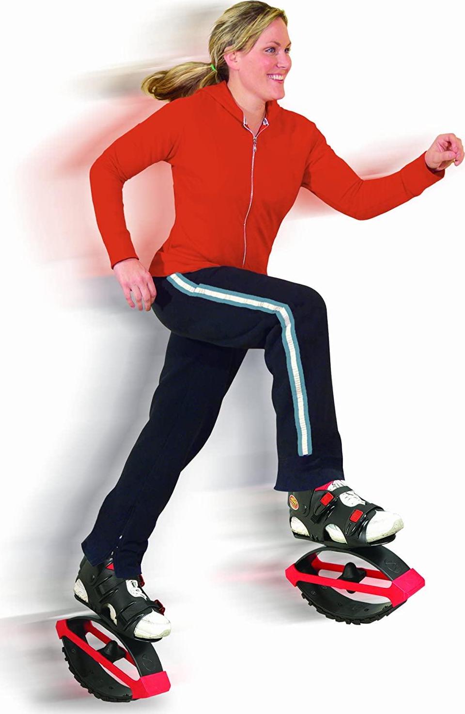 The new, improved wider boot design of our latest AIR KICKS models are more ergonomically shaped, so just three sizes (Small, Medium or Large) will fit virtually any foot, from 8-year olds to age 60 or more – male or female. That means it is easier to determine your size. The new design retains the patented JUMPING JAX technology, which utilizes heavy-duty, rubber T-Springs to capture and then transform downward energy into longer, low-impact strides that are gentle on the ankles, knees and back.