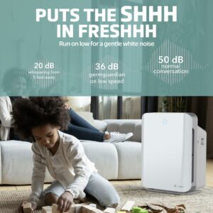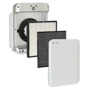 – This air purifier for home features a True HEPA air filter that captures up to 99.97% of harmful germs, dust, pollen, pet dander, mold spores, and other allergens as small as 0.1 microns from the air