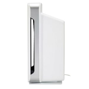 This mid-size console air purifier is perfect for those suffering from allergies. With a HEPA filter, it captures 99.97% of dust and allergens as small as 0.1 microns in size! This console air purifier circulates the air 1x per hour in 1760 square foot rooms and 4.8x per hour in 365 sq. ft rooms, ensuring thorough purification. Ideal for large sized rooms such as: dorm rooms, bedrooms, and other living areas! A large carbon filter attacks common household odors including those caused by smoke, cooking, and pets. Additionally, it works to reduce the many VOC’s that are emitted by common household products and cleaning chemicals. The UV-C light helps reduce airborne bacteria, viruses, mold spores*, and works to reduce volatile organic compounds. Choose from 3 speeds depending on your needs, including a low speed that runs ultra-quiet that is great for light sleepers. It also features a timer that can be set for up to 8 hours. Standing 21″ tall, this mid-size console is ideal to use in rooms up to 1760 sq. feet. *Tested with Staphylococcus Albus, and Escherichia Coli, Aspergillus Niger, and Phi-X174