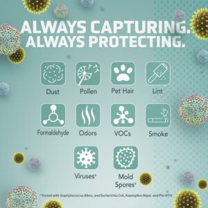 – True HEPA air filter reduces up to 99.97% of harmful germs, dust, pollen, pet dander, mold spores, and other allergens as small as 0.1 microns from the air