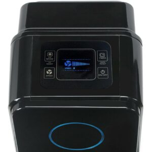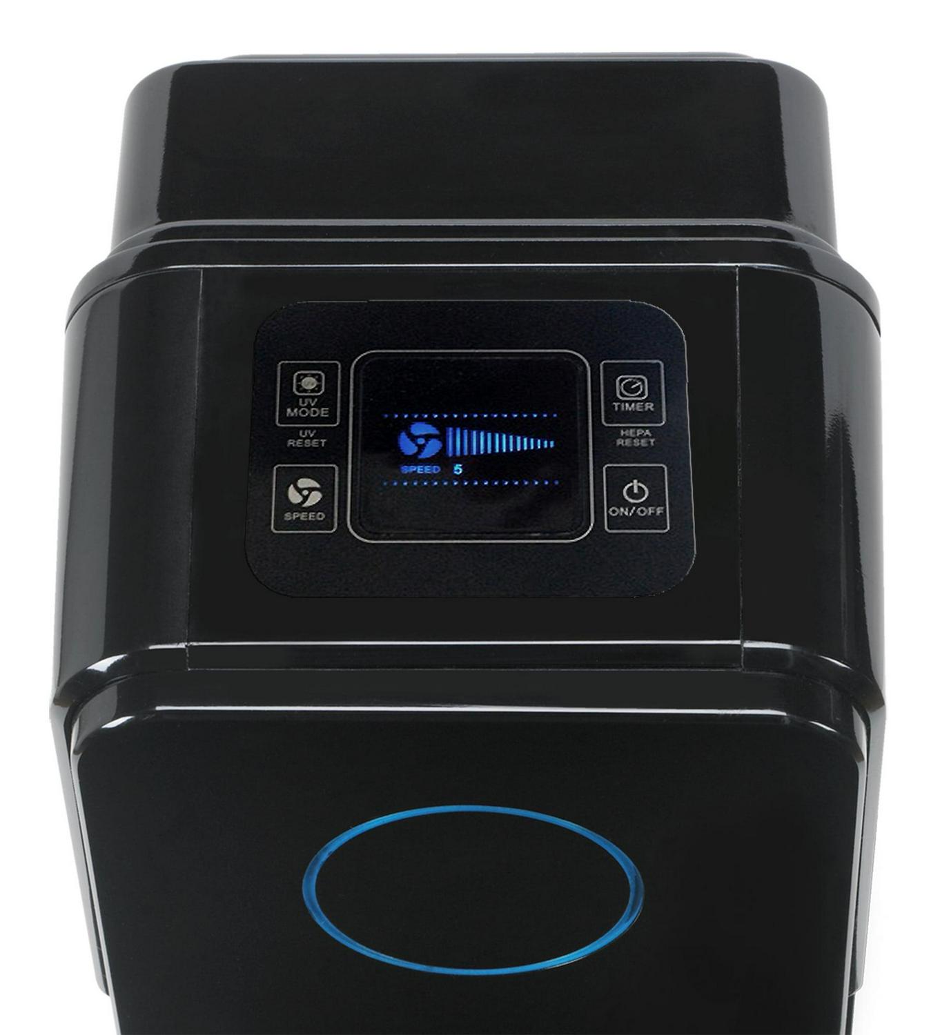 – Easy to use electronic controls with 5 speeds, an 8-hour auto off timer, and a filter change indicator